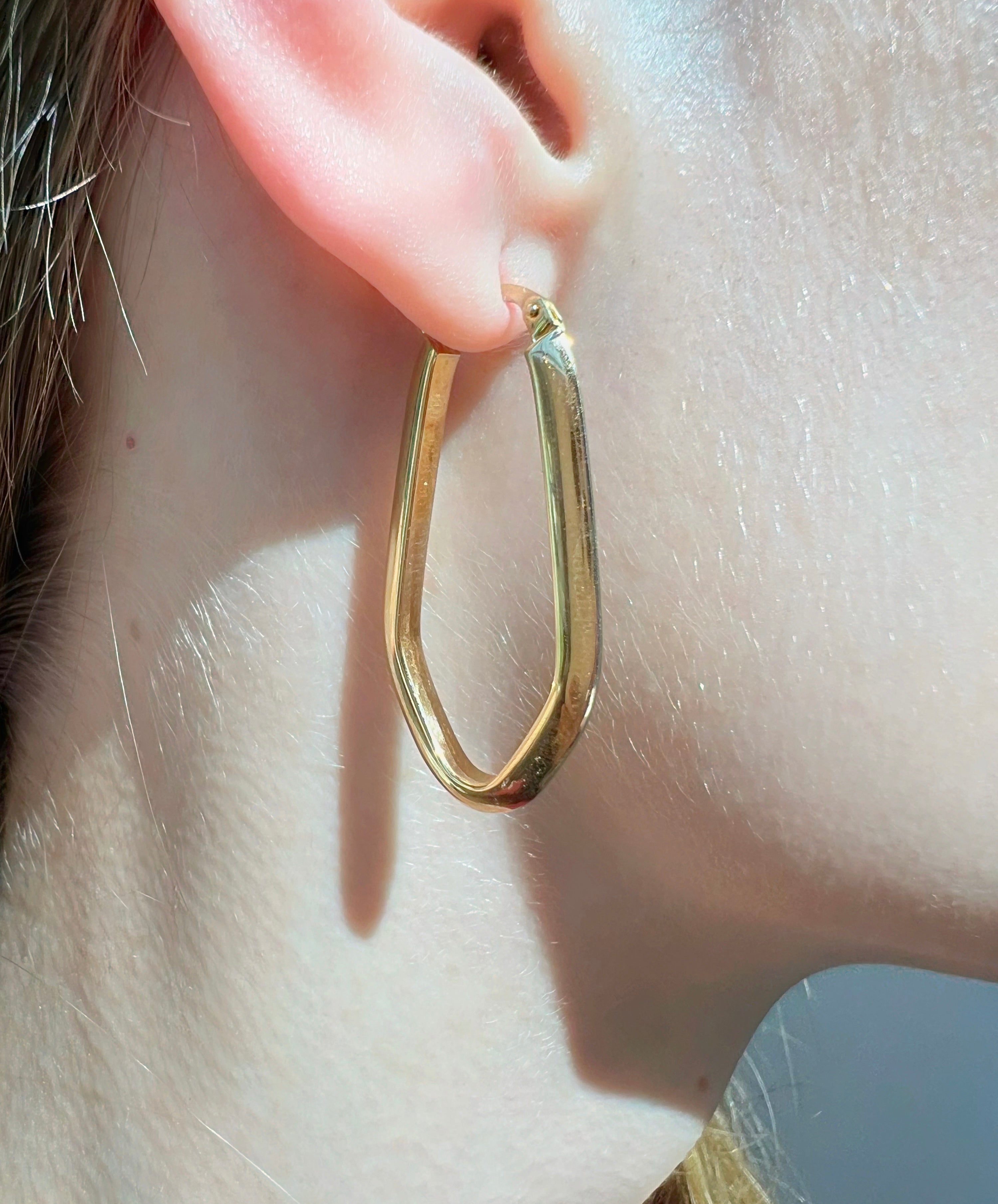 ✔ Geometric, open-frame hoop design for a bold, modern aesthetic
