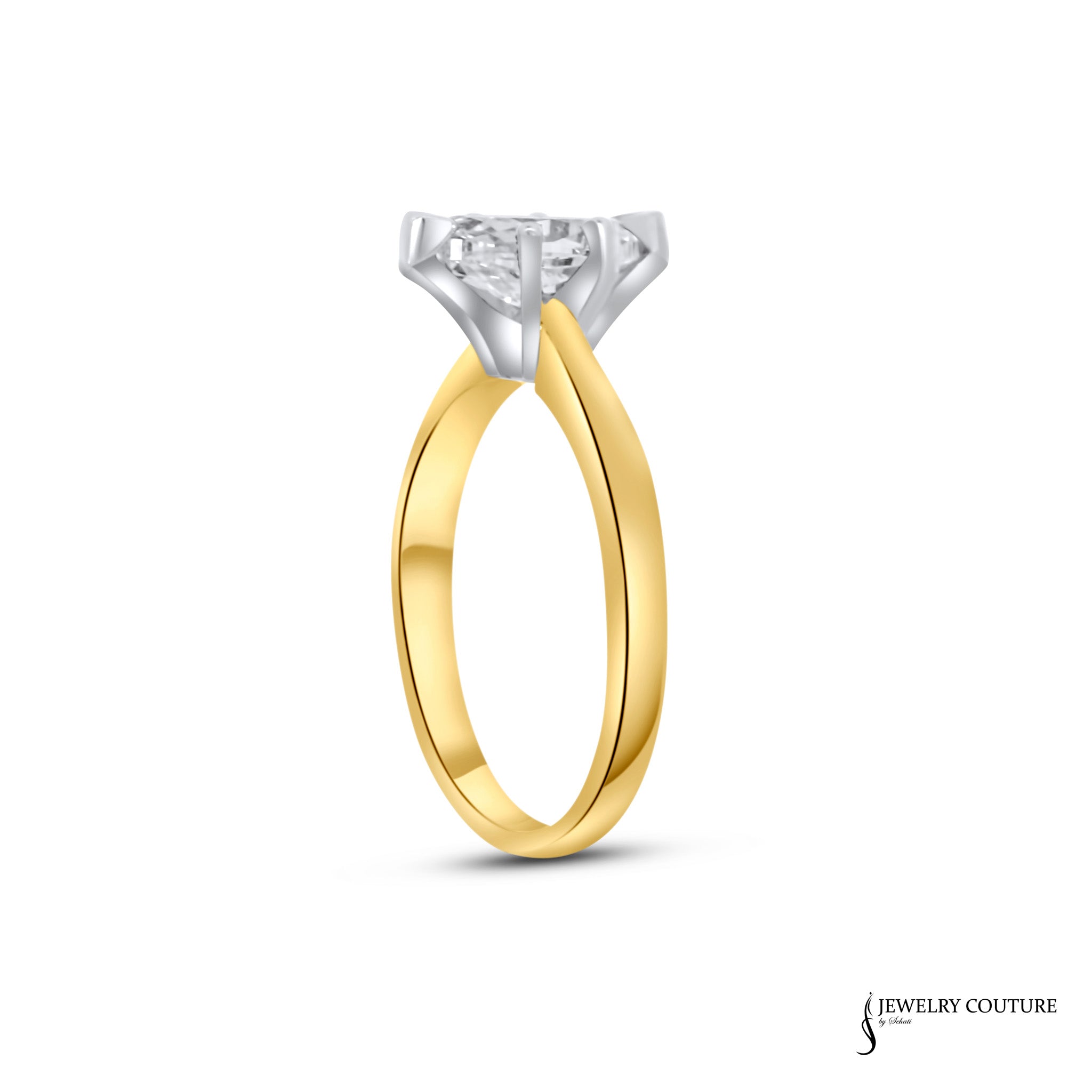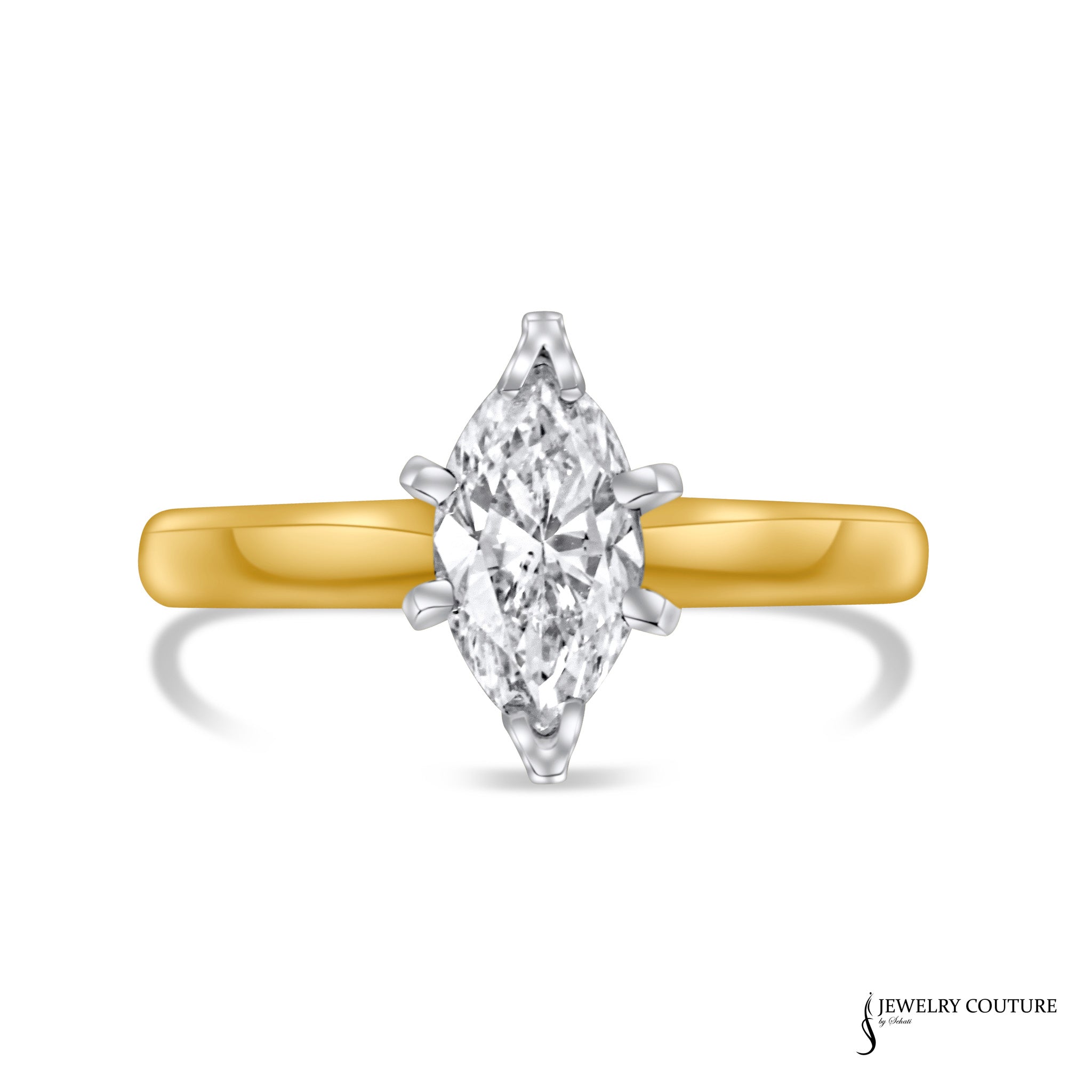 Crafted from 14KT Yellow Gold, this elegant solitaire ring boasts a dazzling 1.02CT Marquis center diamond.