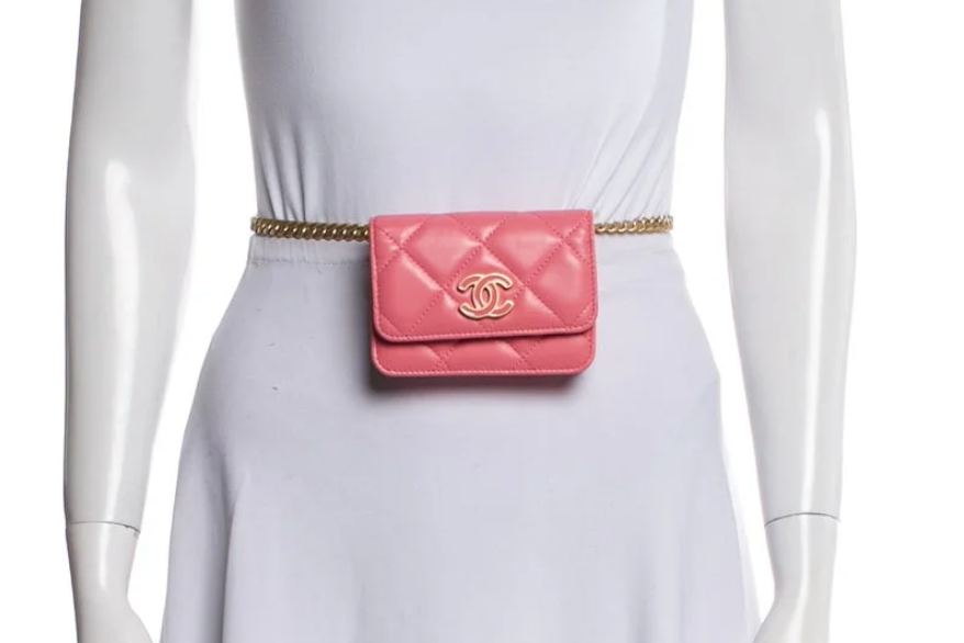 Chanel 2021 Lambskin Enamel CC Belt Bag Pink pre-Loved Authentic