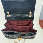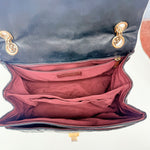 This stunning bag has a masterfully crafted leather exterior with gold tone hardware and the iconic Mademoiselle lock on the flap.