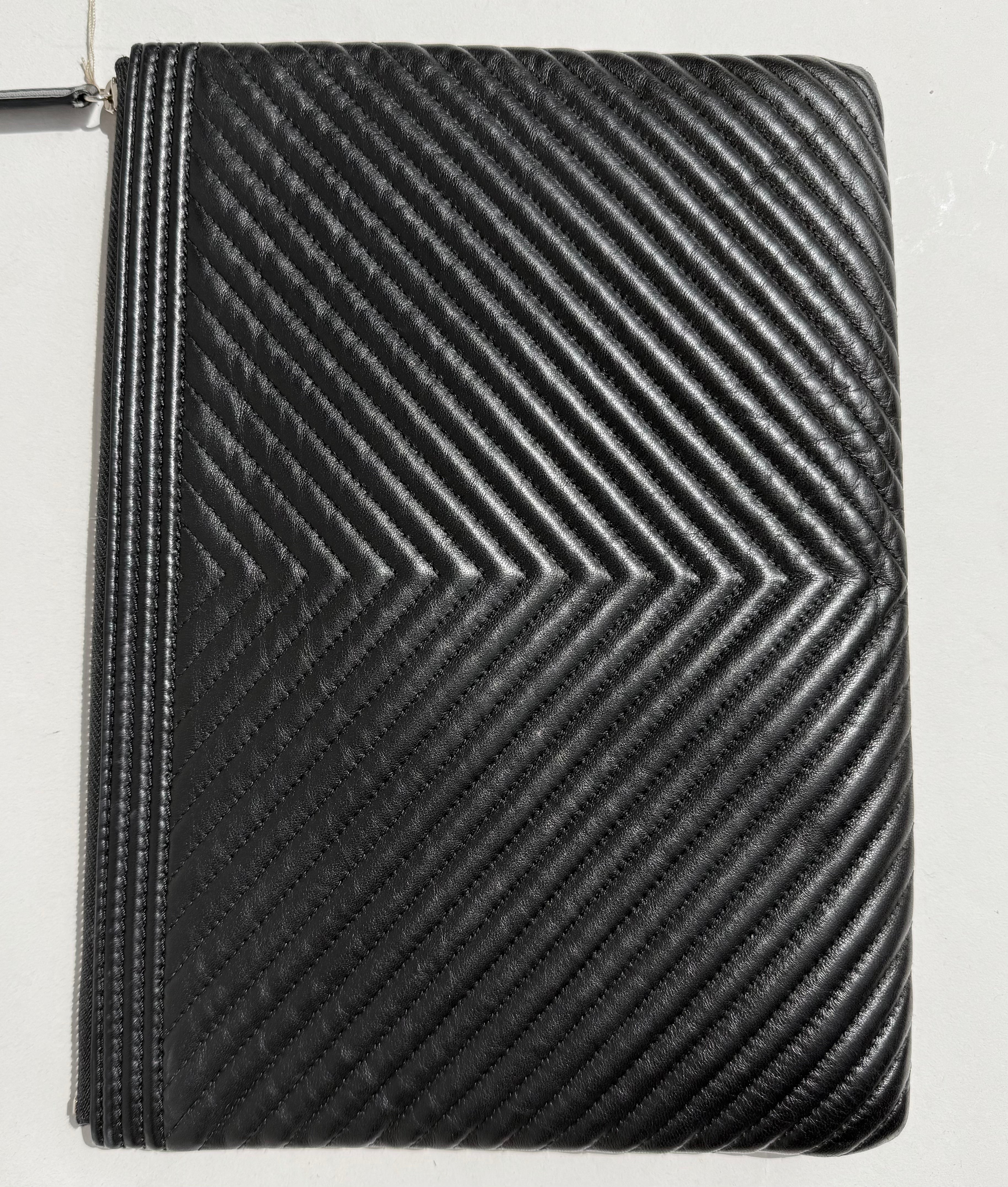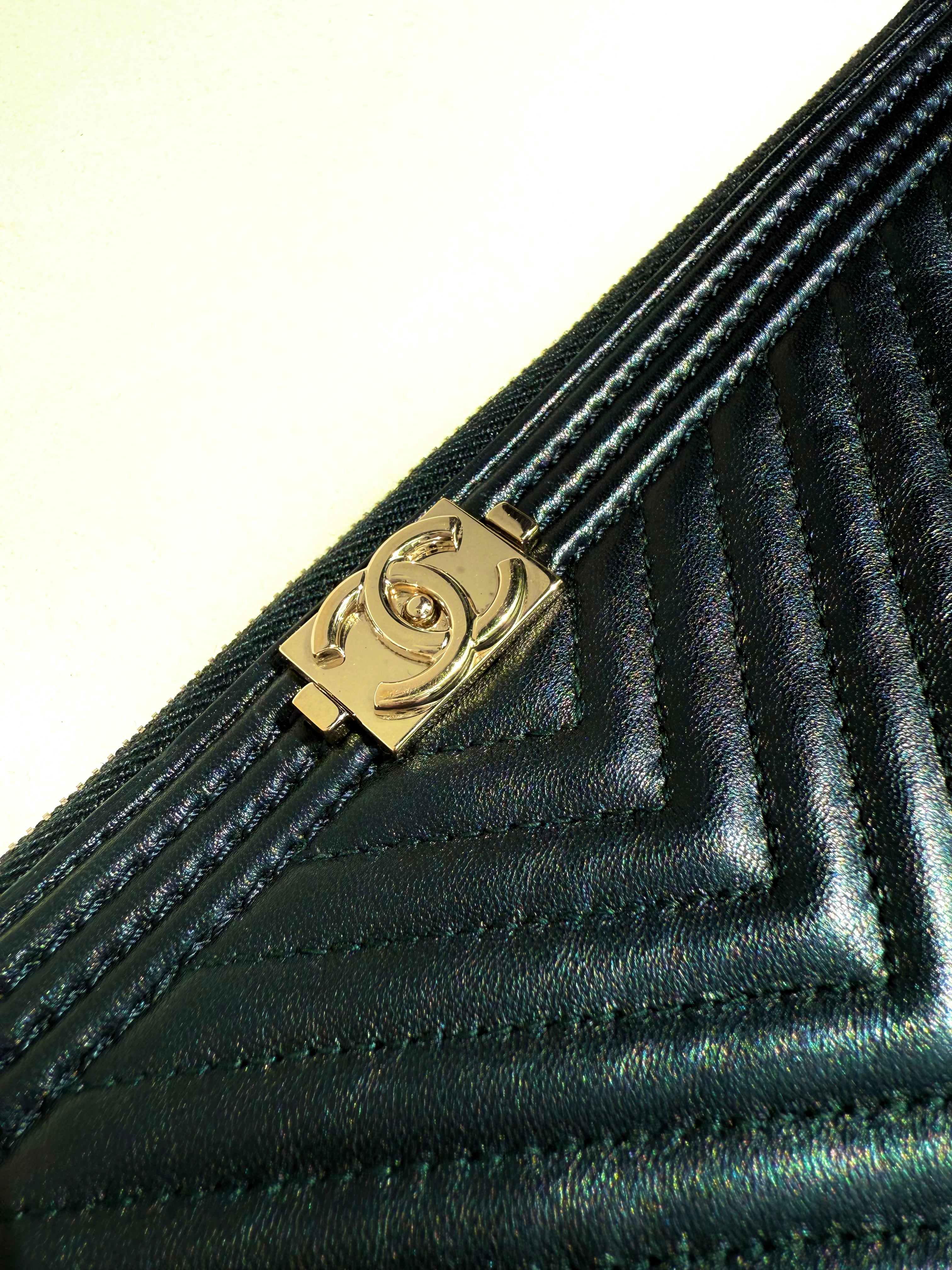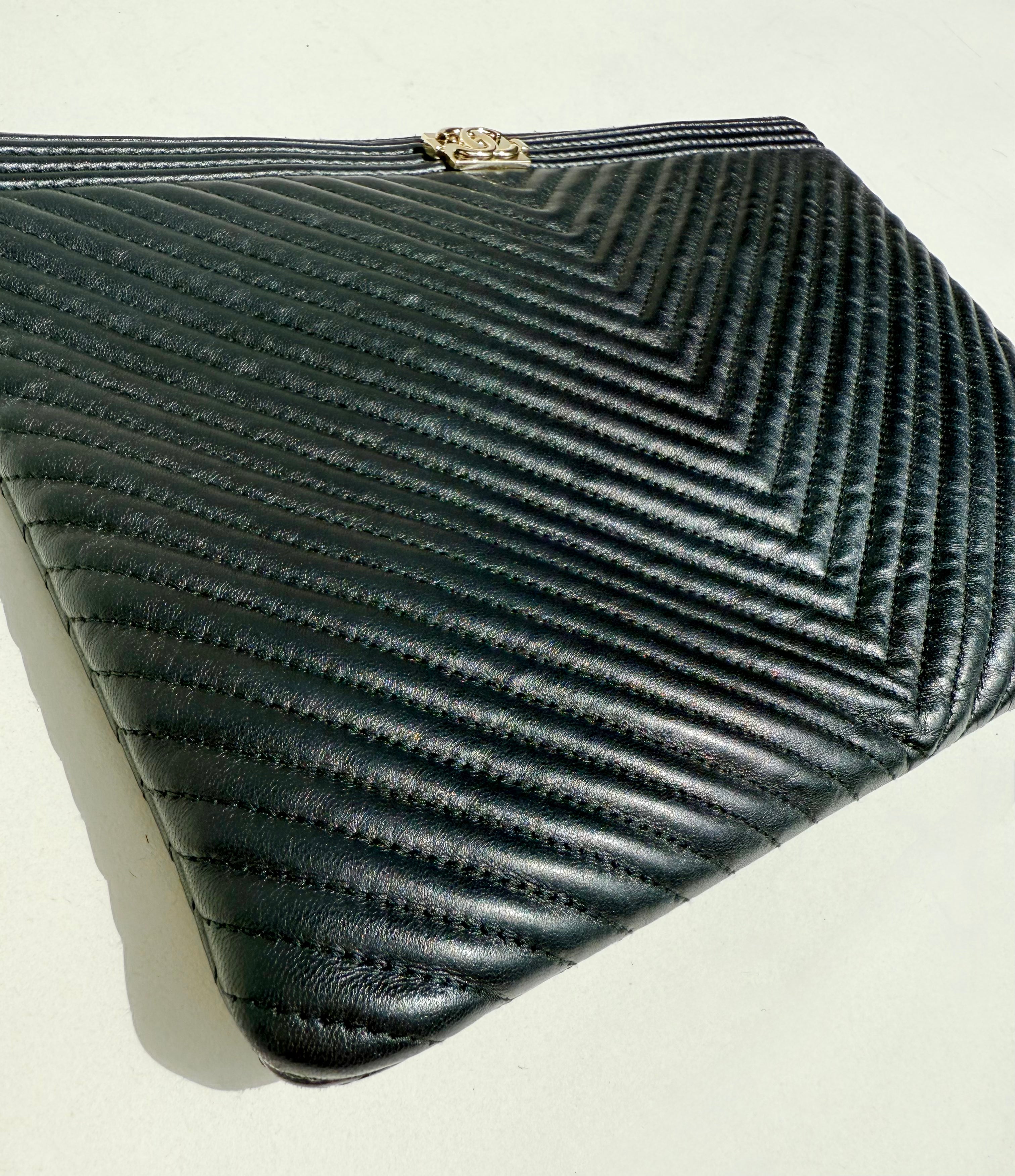 CHANEL Calfskin Chevron Medium Boy Cosmetic Case Black