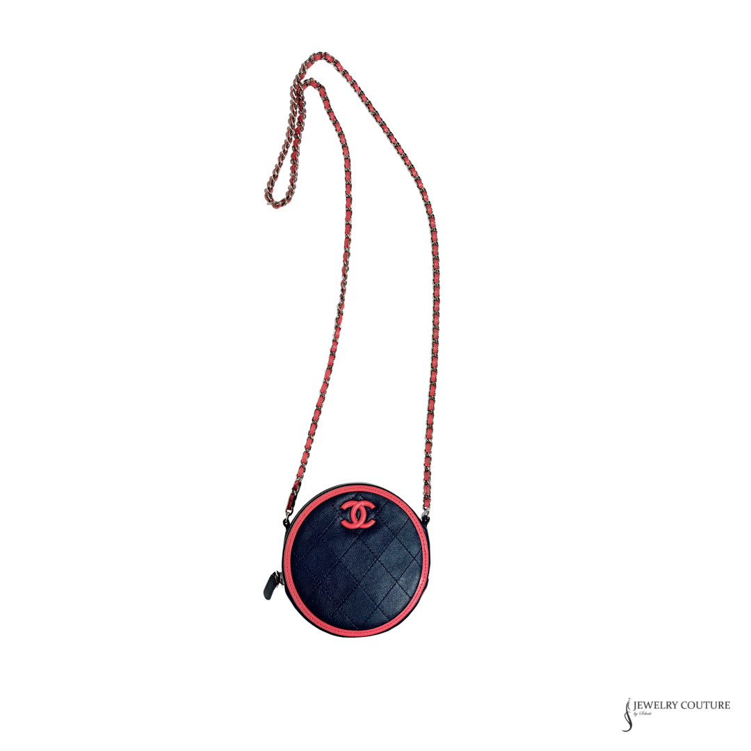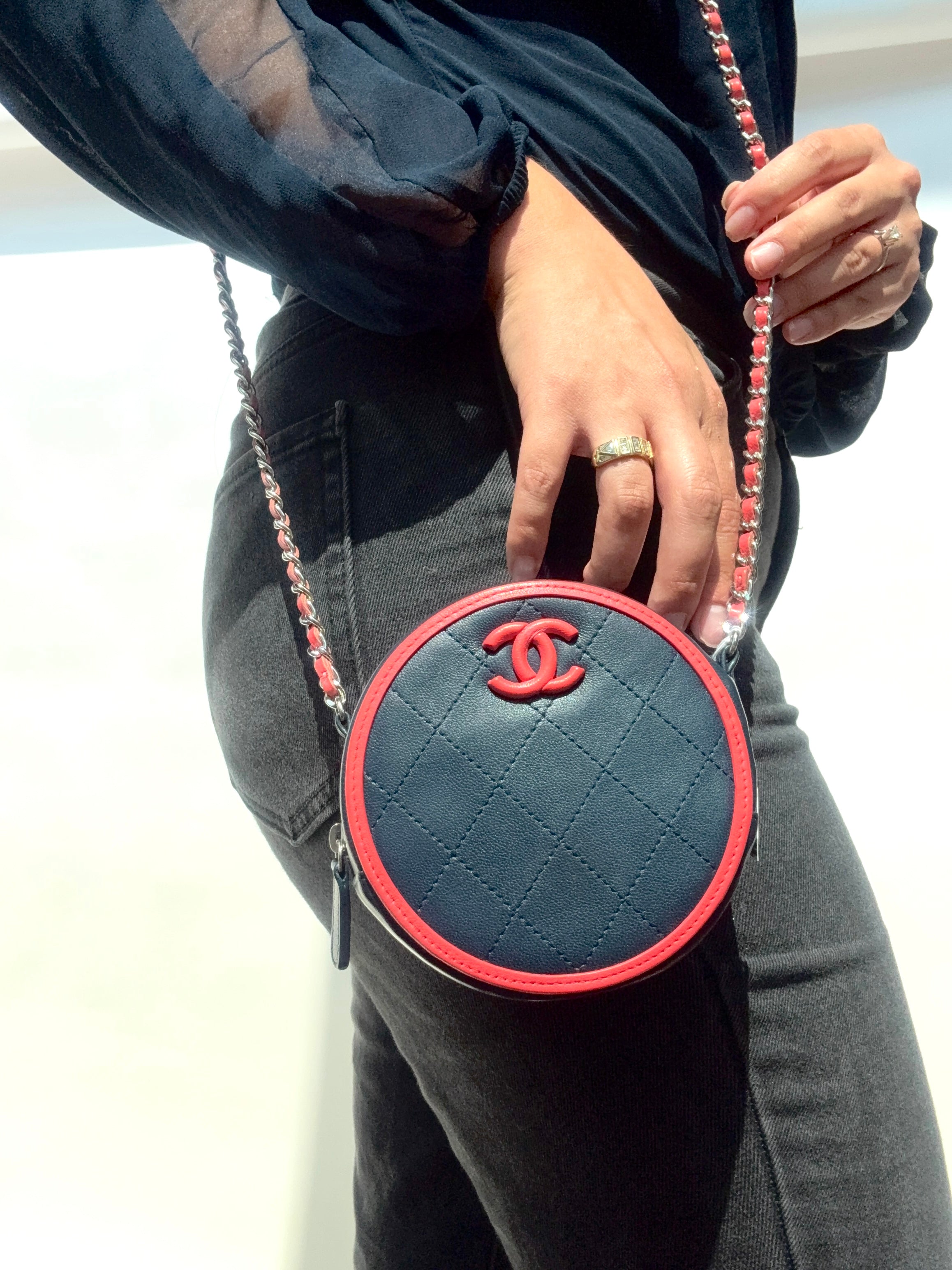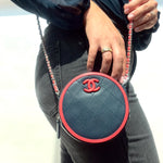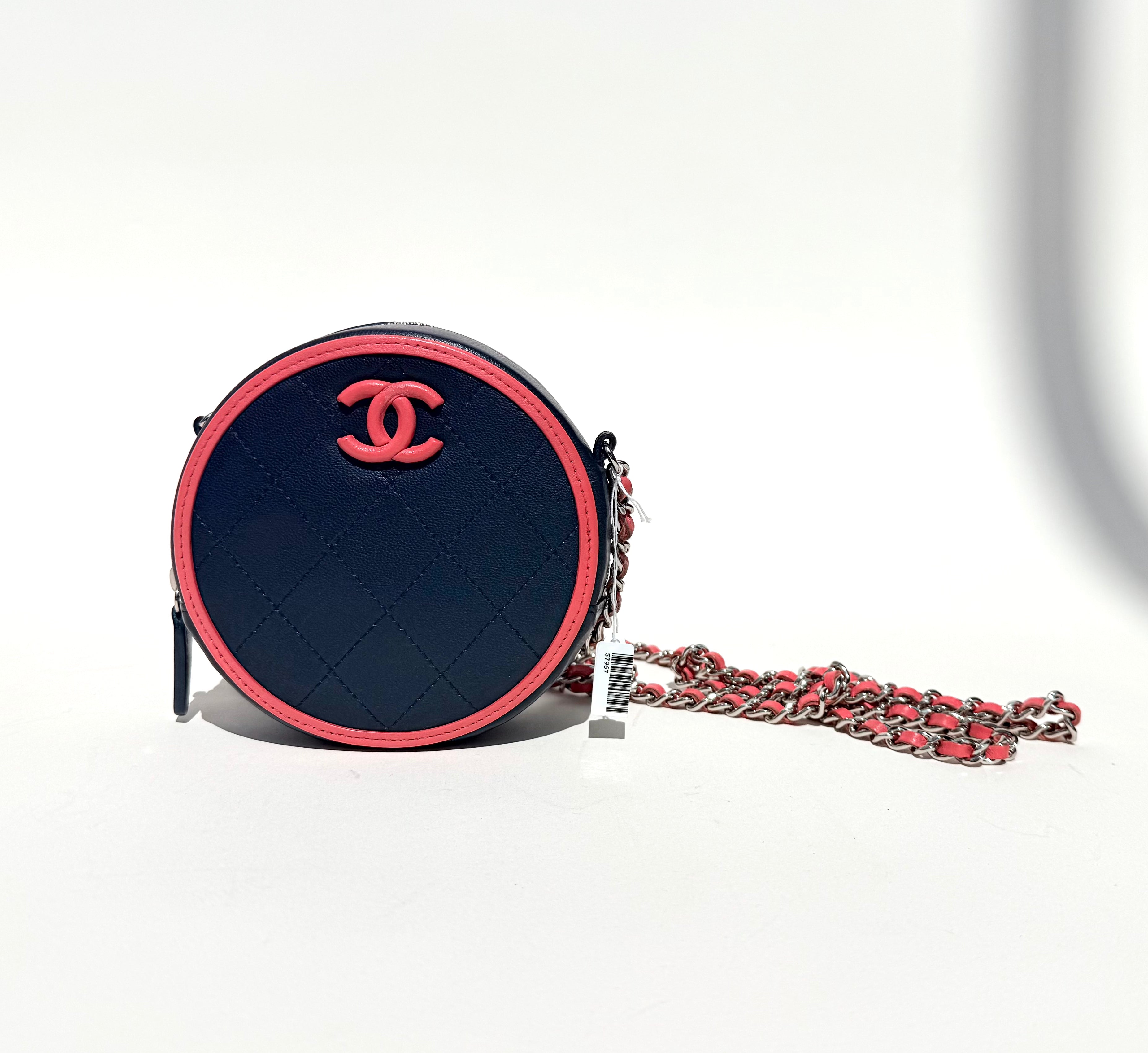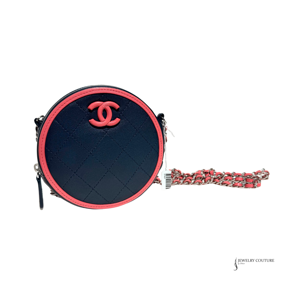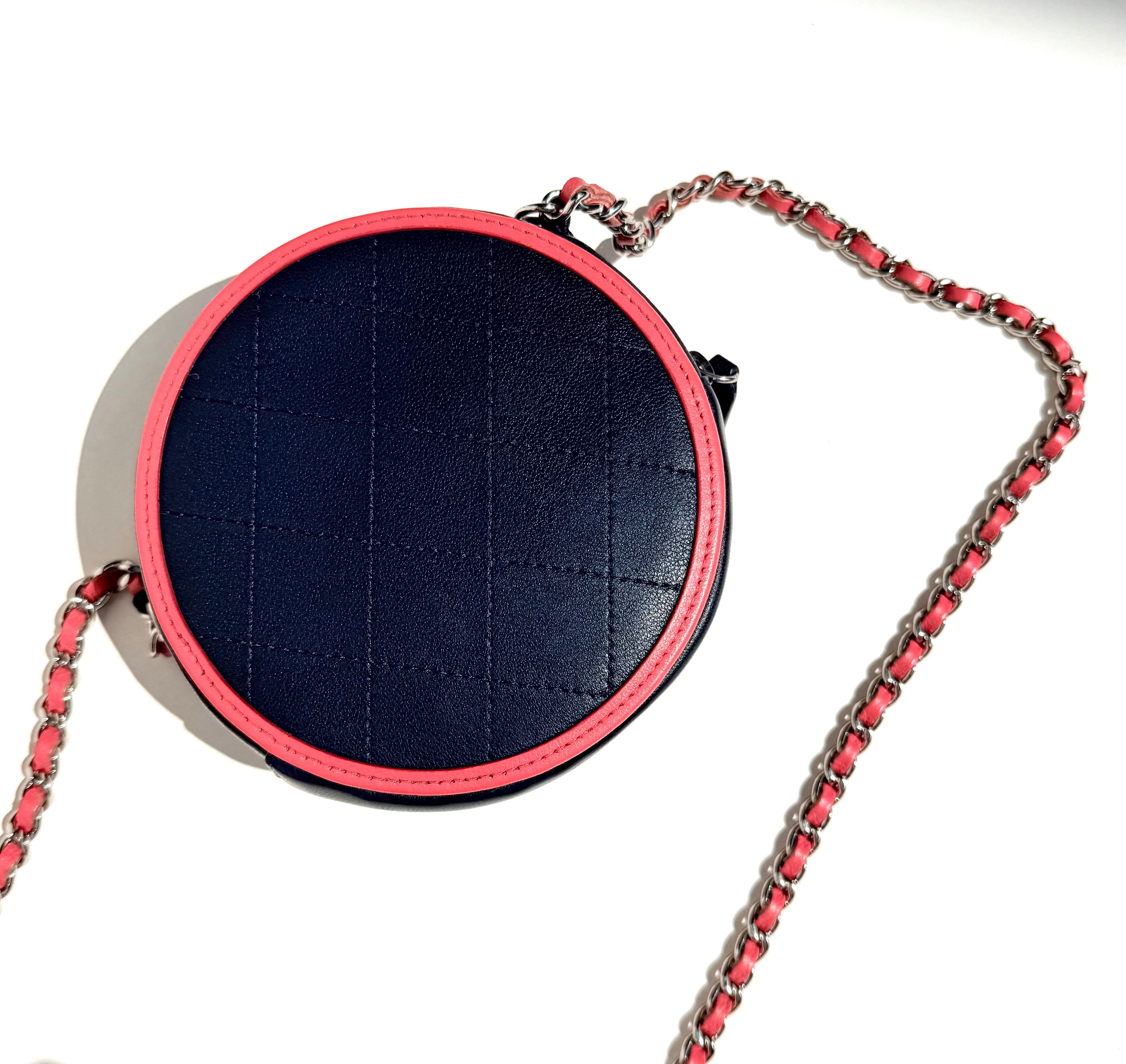 Chanel color pop Round Clutch with Chain Quilted Lambskin Blue Pink