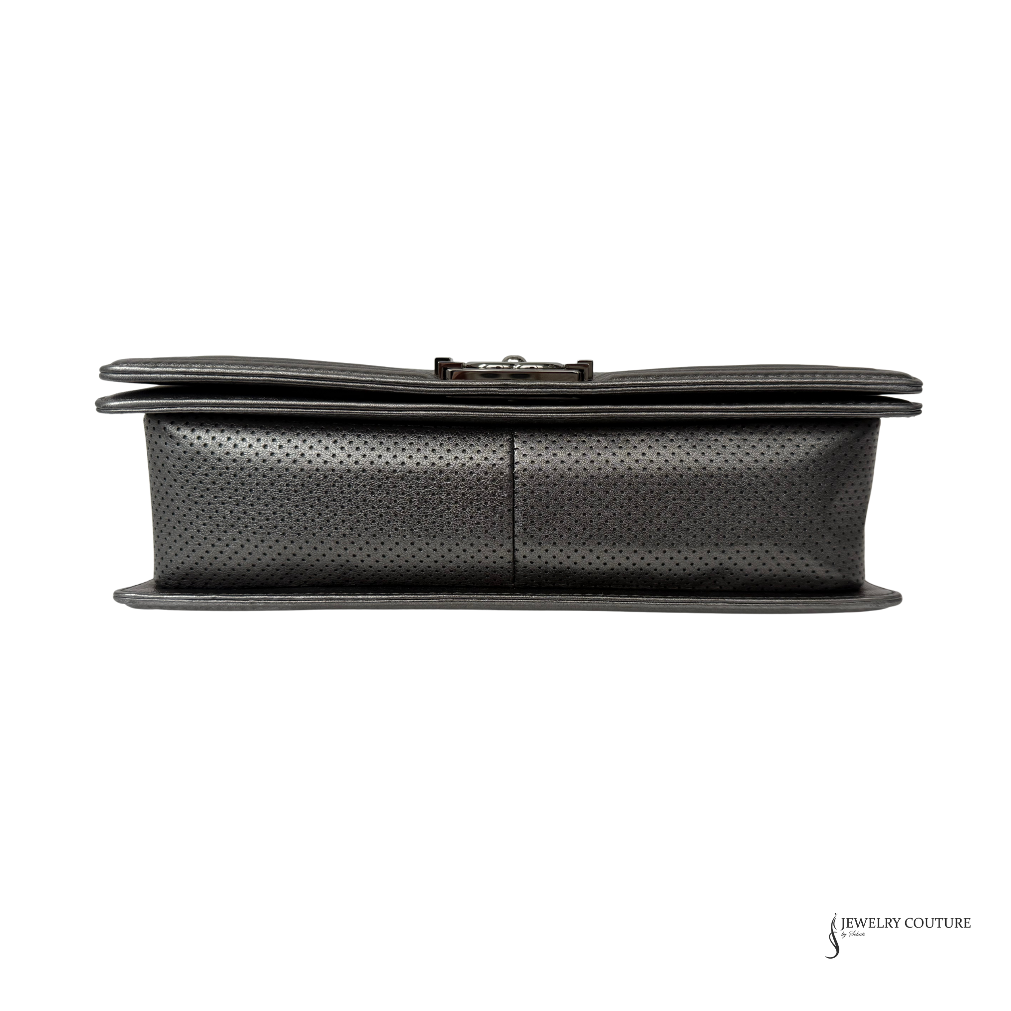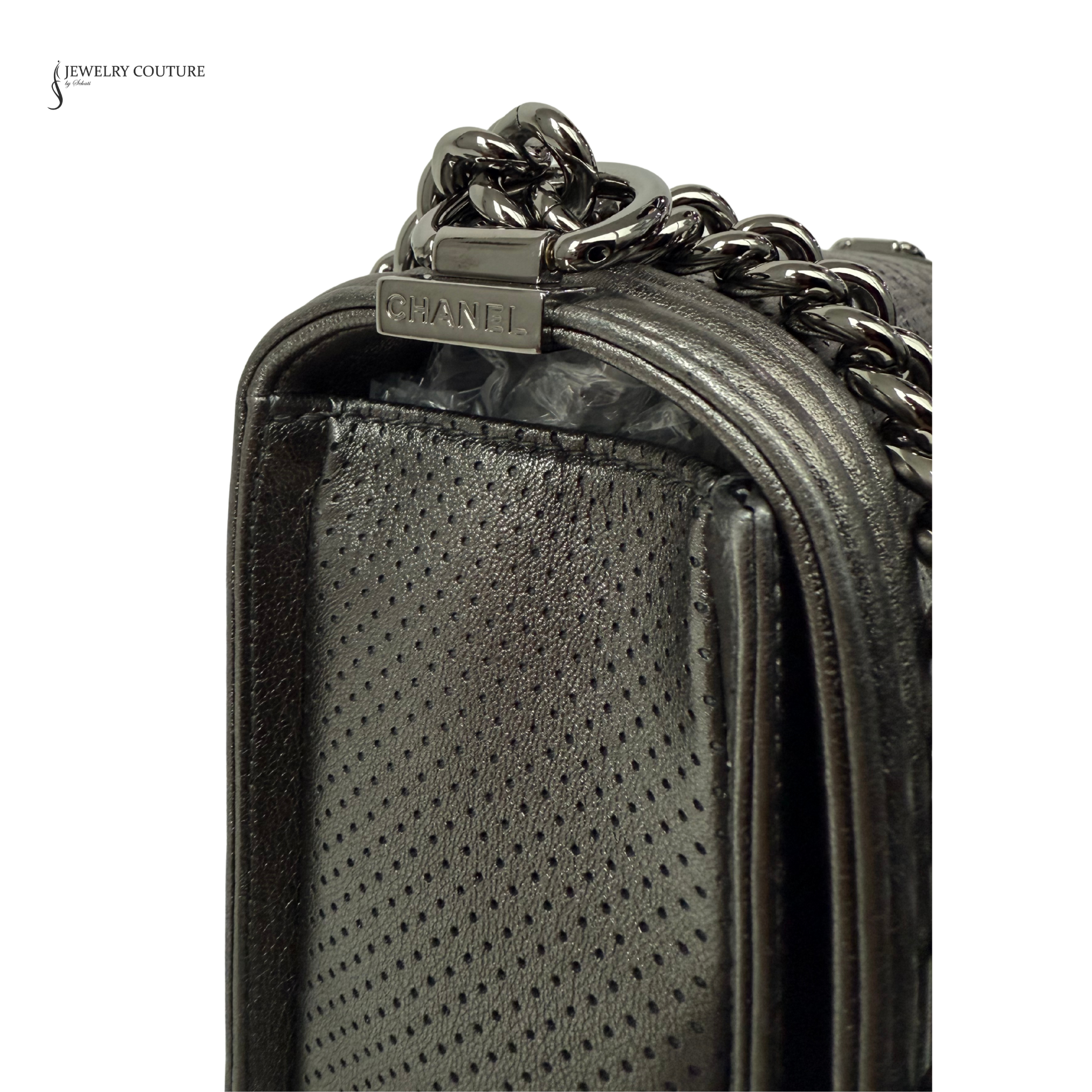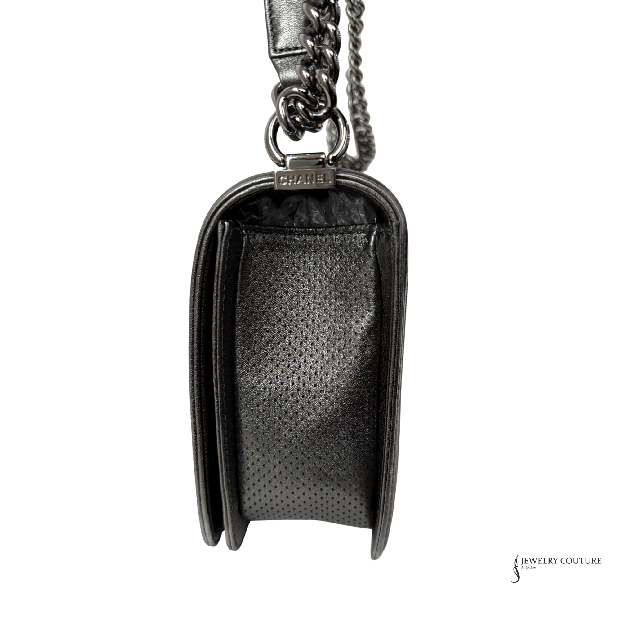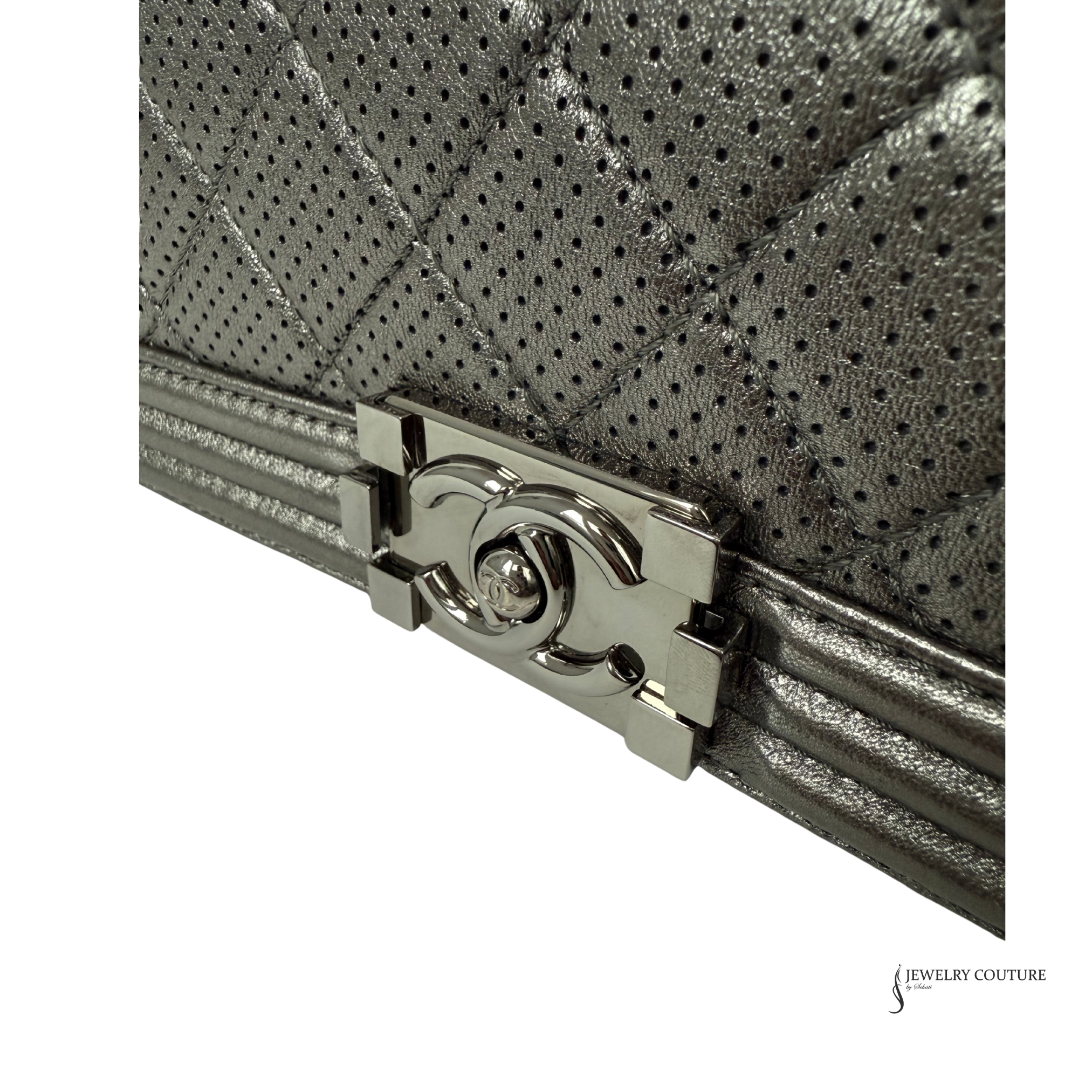 Chanel Gray Medium Quilted Perforated Metallic Lambskin Boy Flap Brown Dark grey