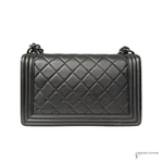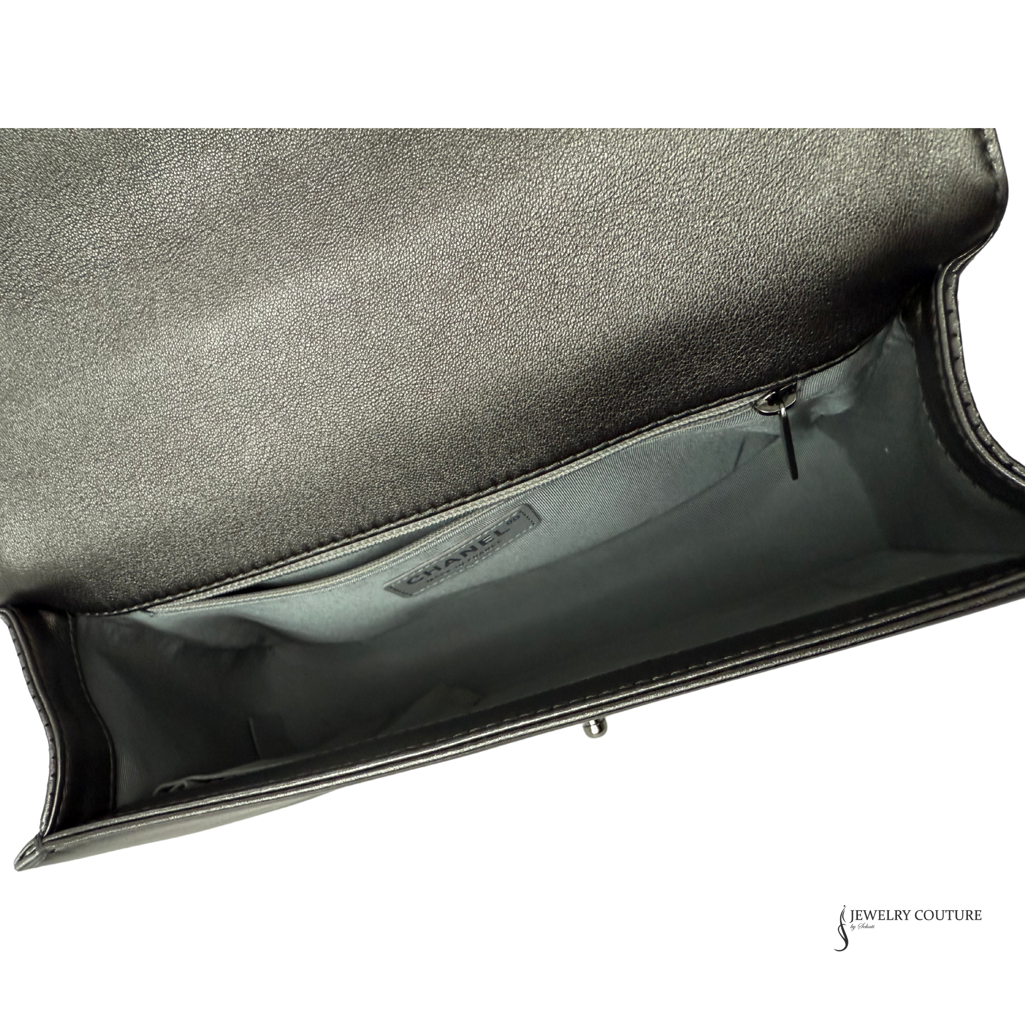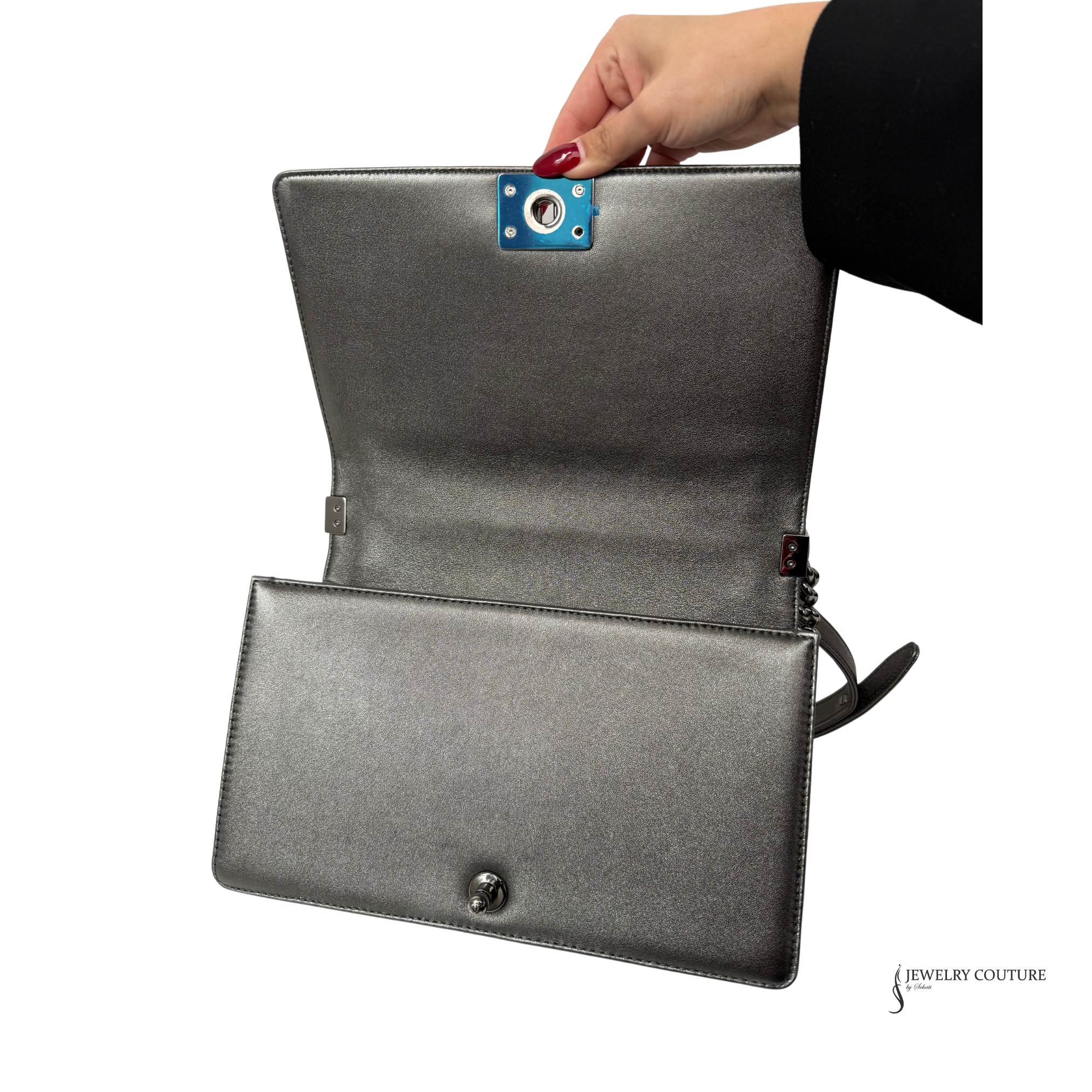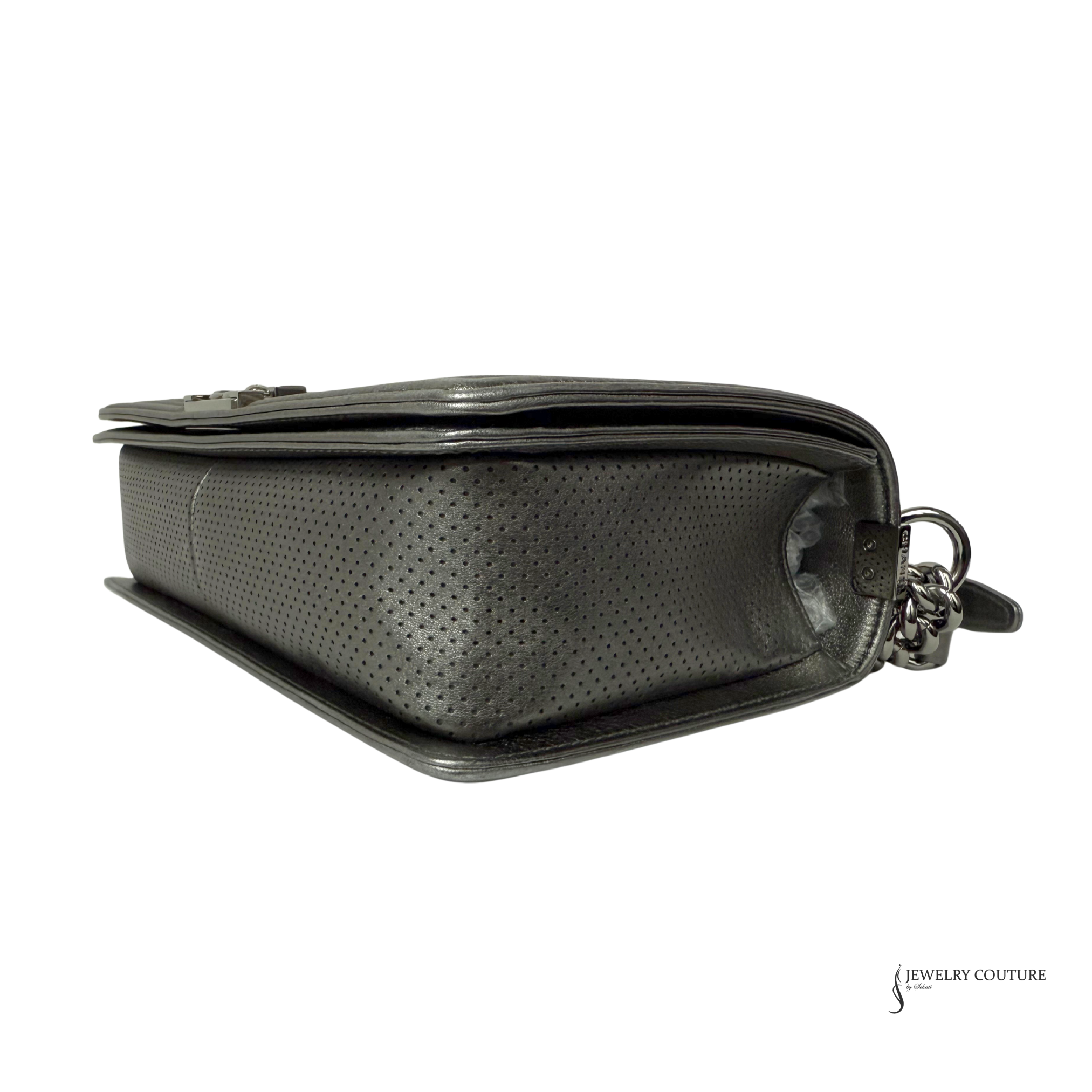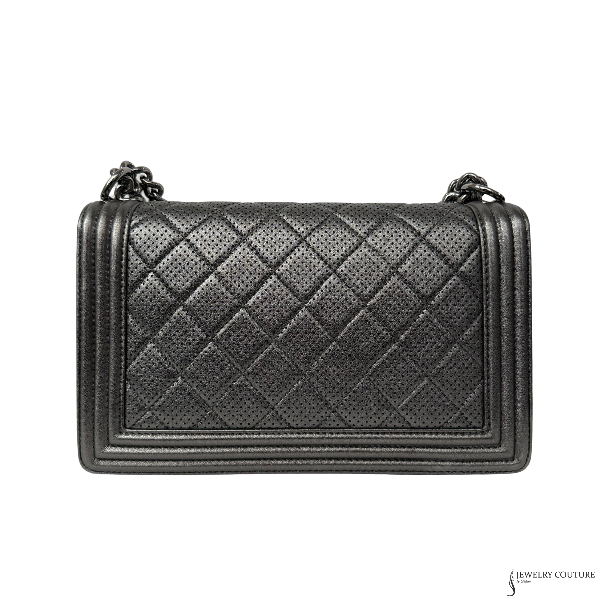 Chanel Gray Medium Quilted Perforated Metallic Lambskin Boy Flap Brown Dark grey