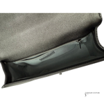 This particular bag is the Large (formerly the new medium) size of the collection and features a long antique silvertone chain-link strap with a leather pad that can be used as a long strap or looped around as a shoulder bag.