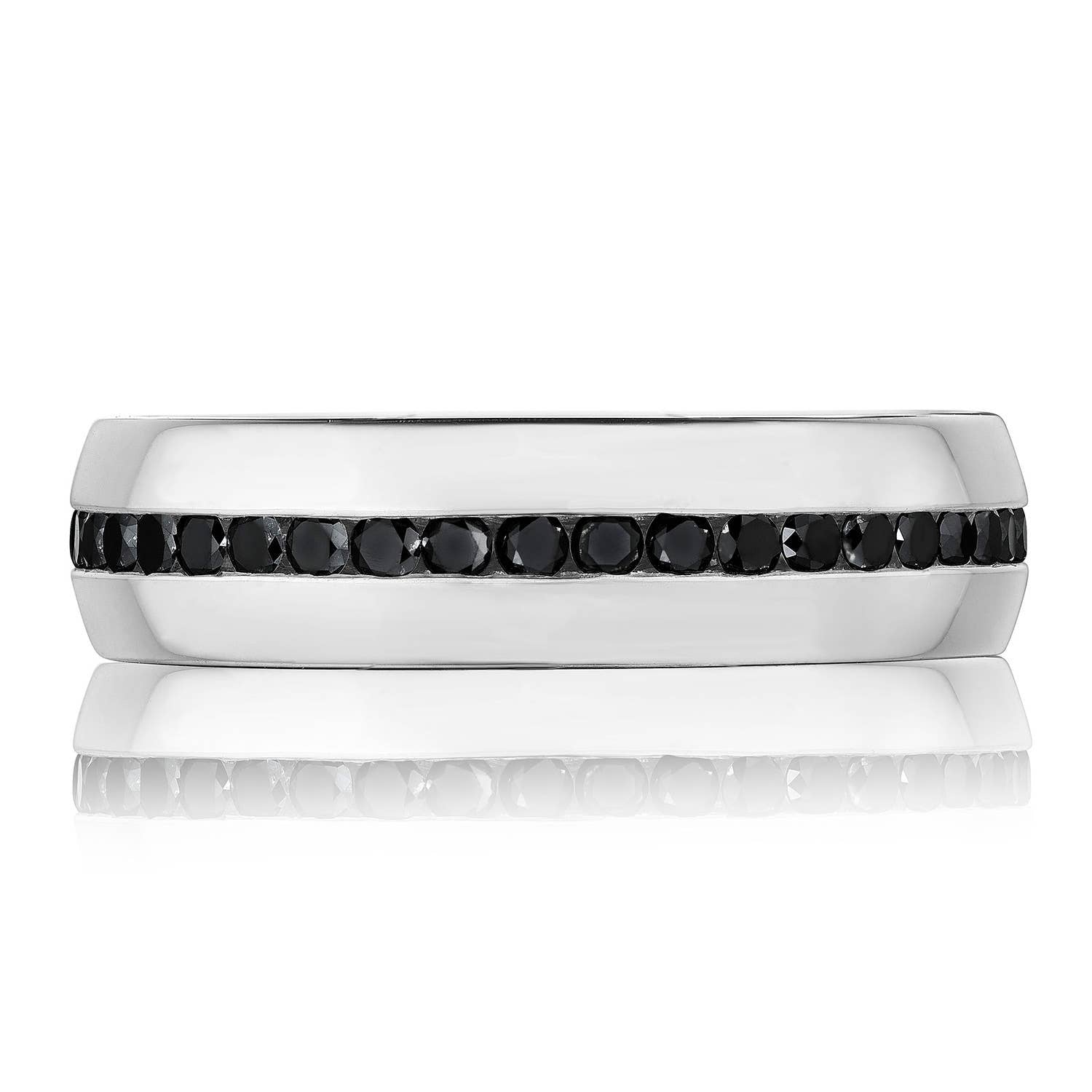 Channel Set Black Diamond in High Polish Finish Wedding Band