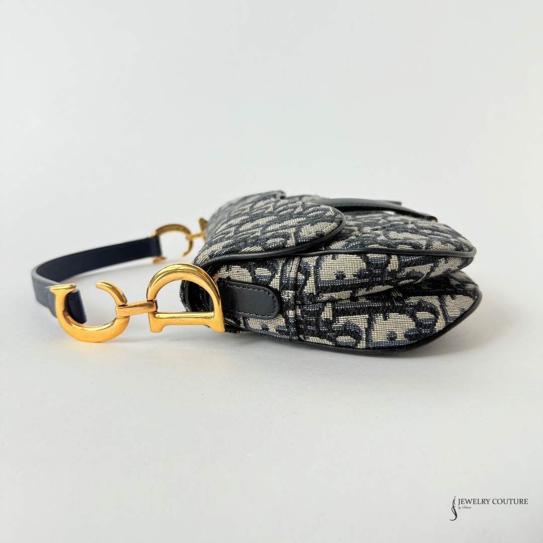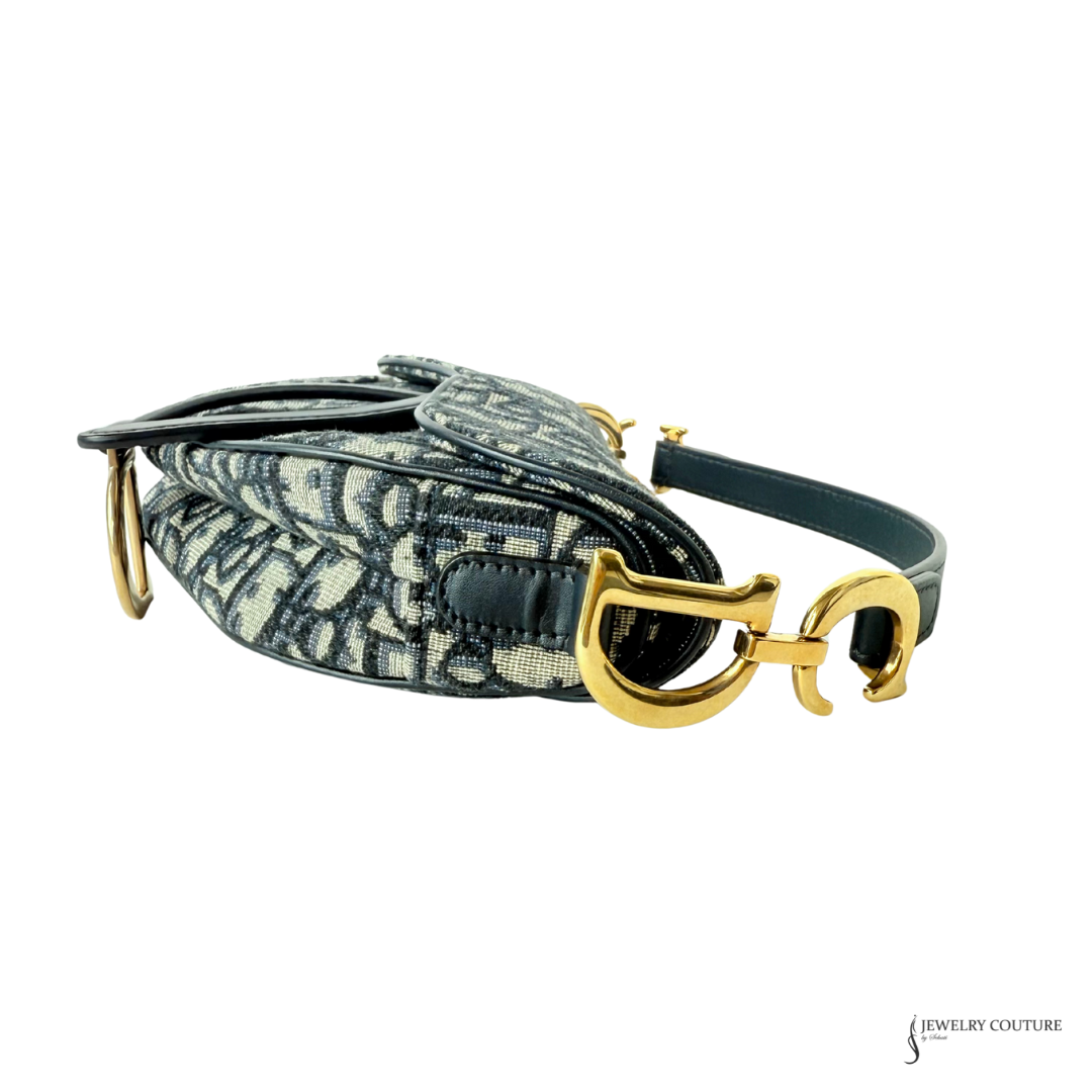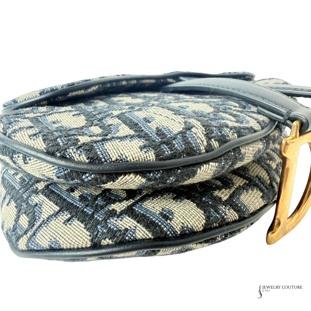 CHRISTIAN DIOR Mini Blue Oblique Canvas Dior Saddle Bag Pre-Owned