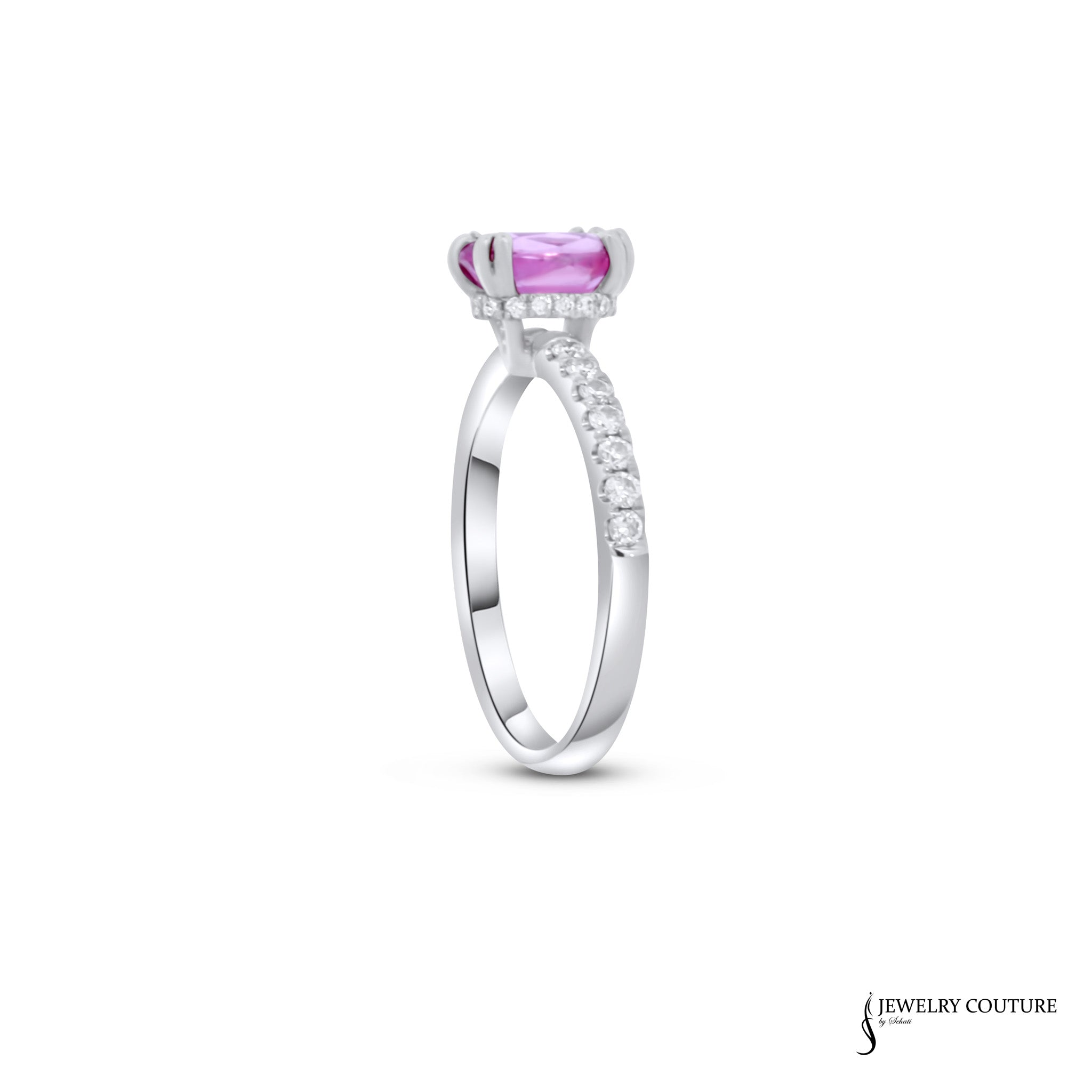 Chrysanthemum - 14KT White Gold and Pink Oval Sapphire