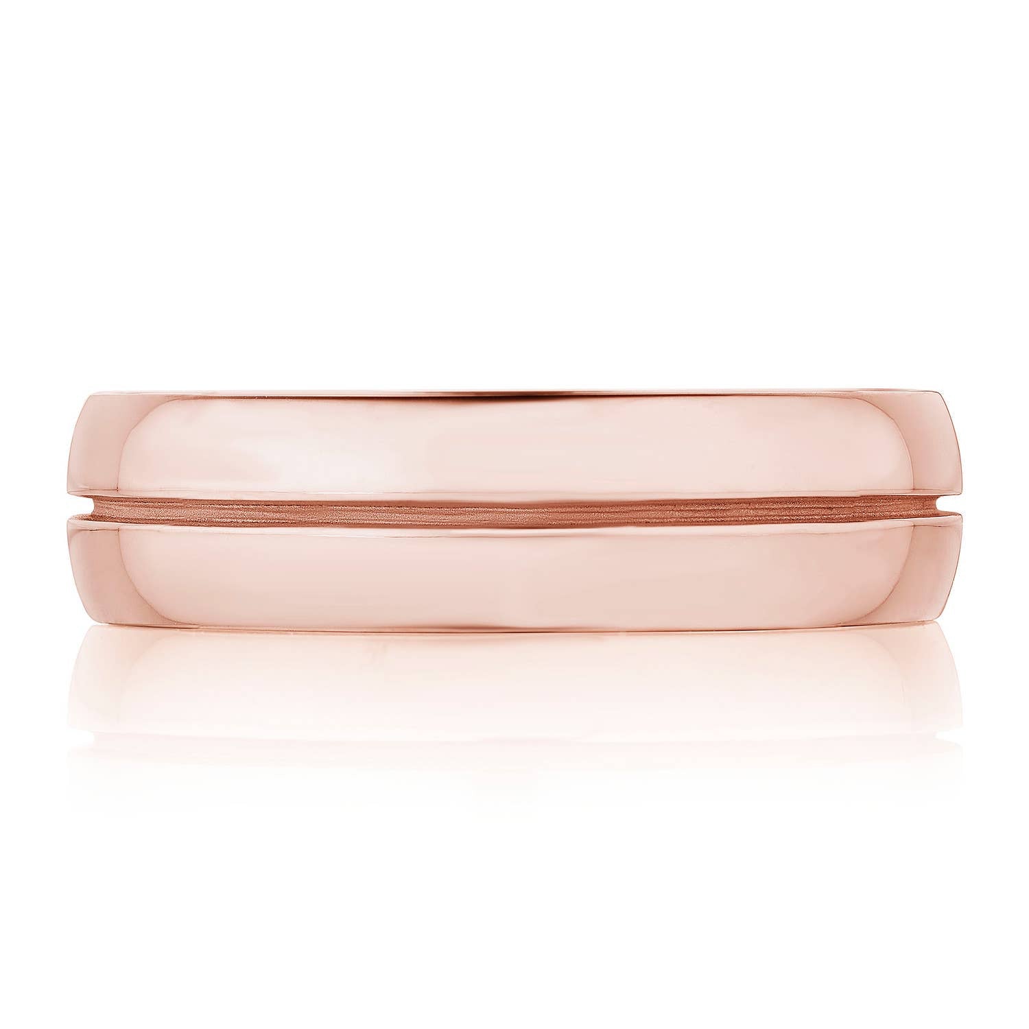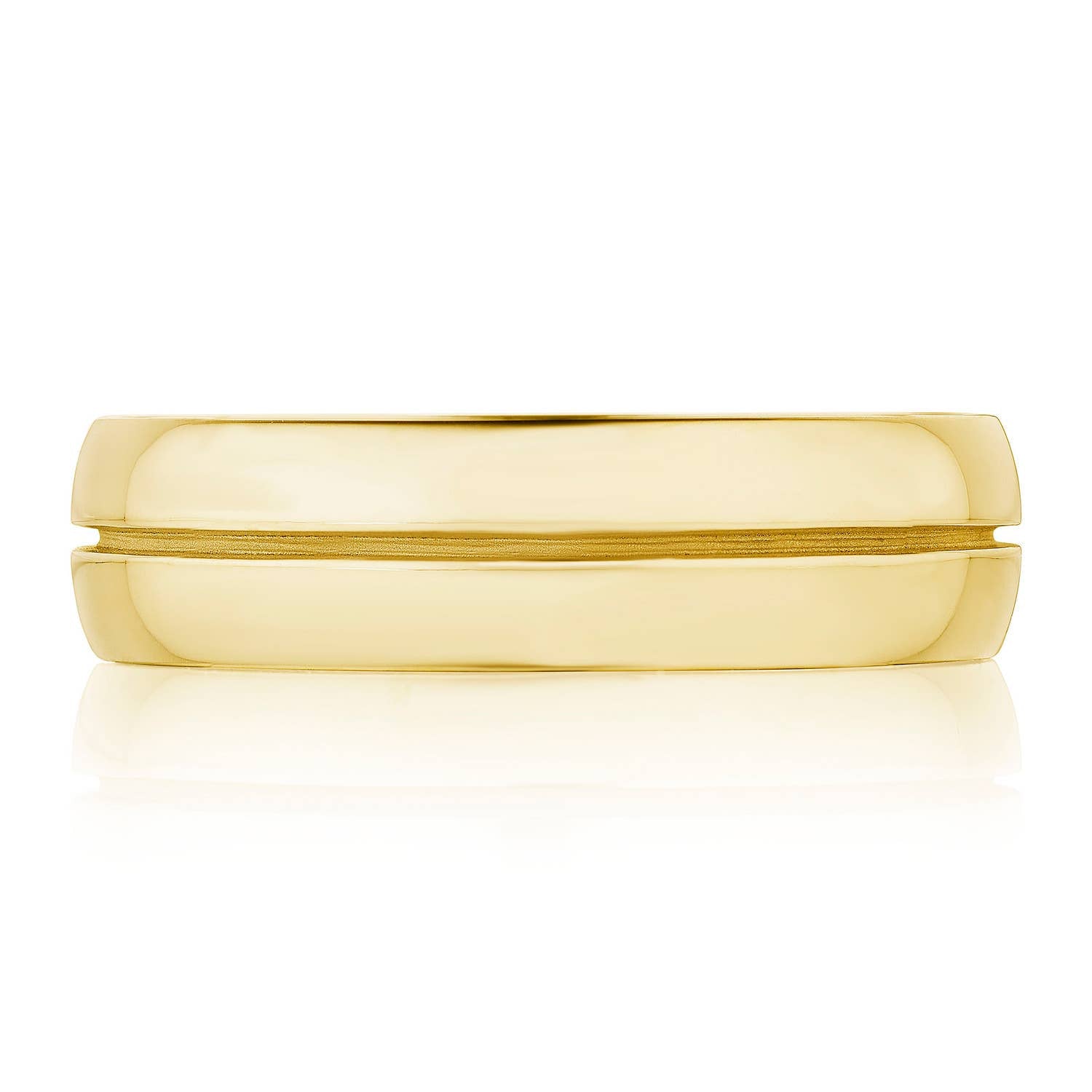The high polish, softly-rounded exterior of this wedding band is decorated with a beveled line in in the middle for a refined silhouette. The interior features sculpted crescent detail with a soft-comfort fit for all-day wearability.