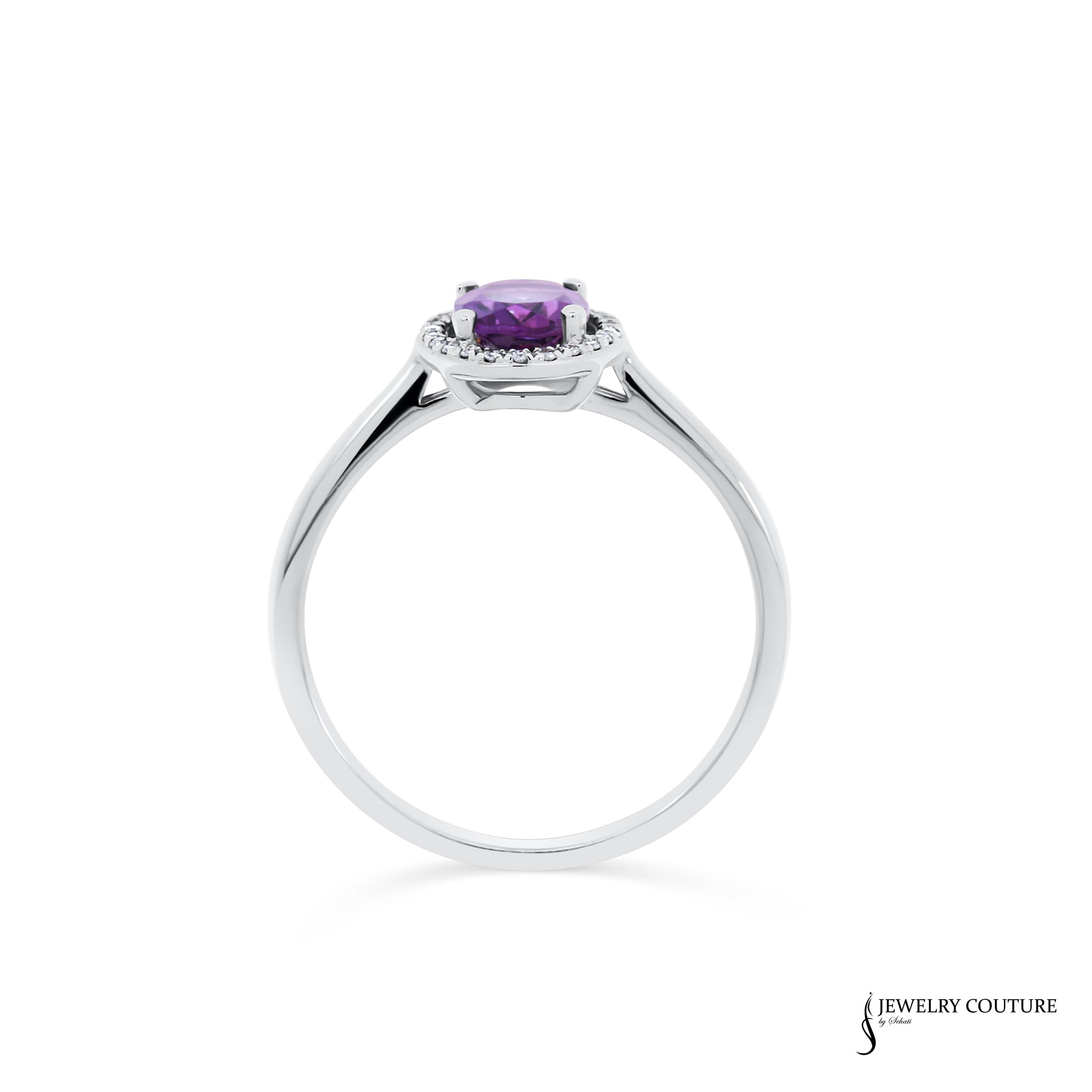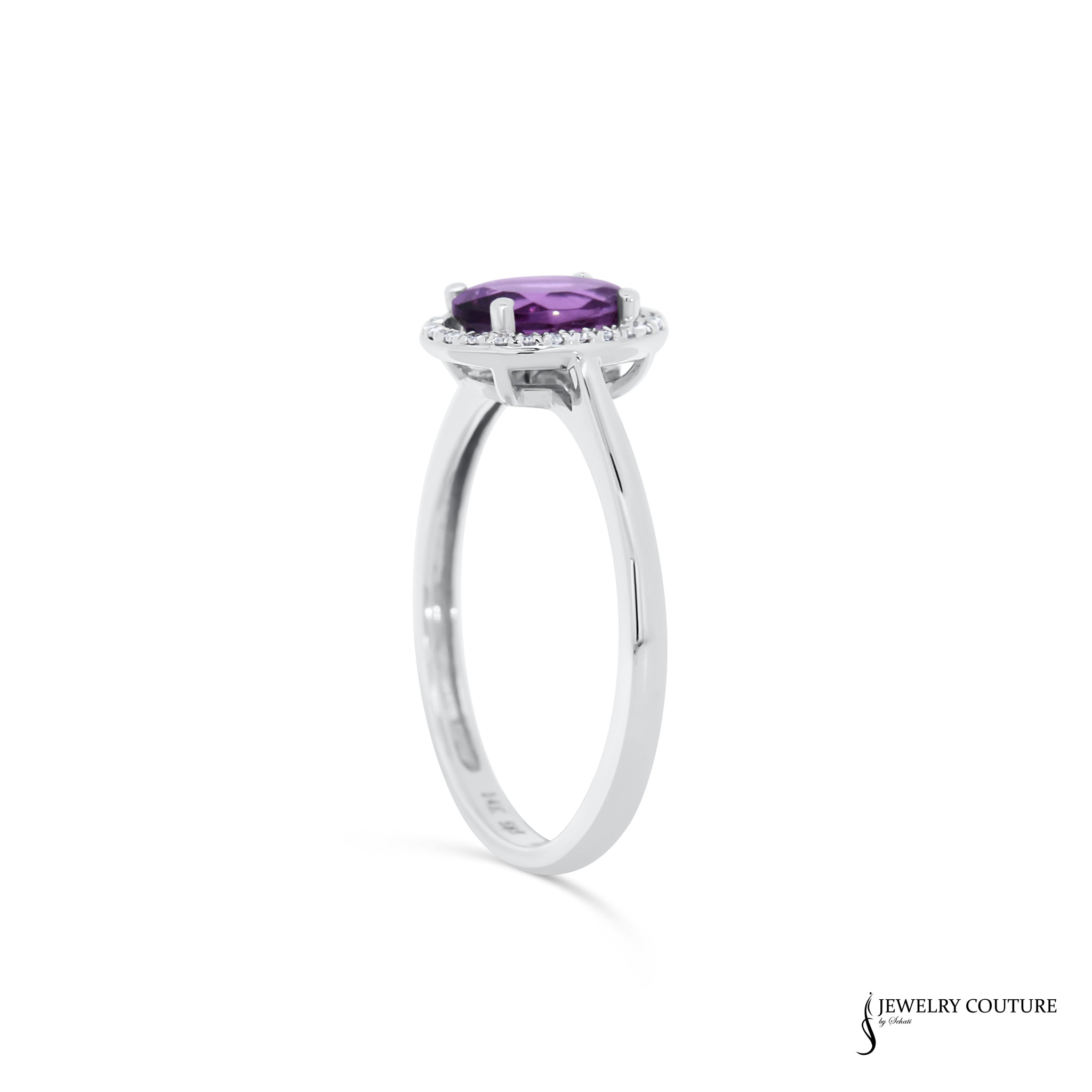 Cooperi - 14KT White Gold Oval Amethyst & Diamond Halo Ring