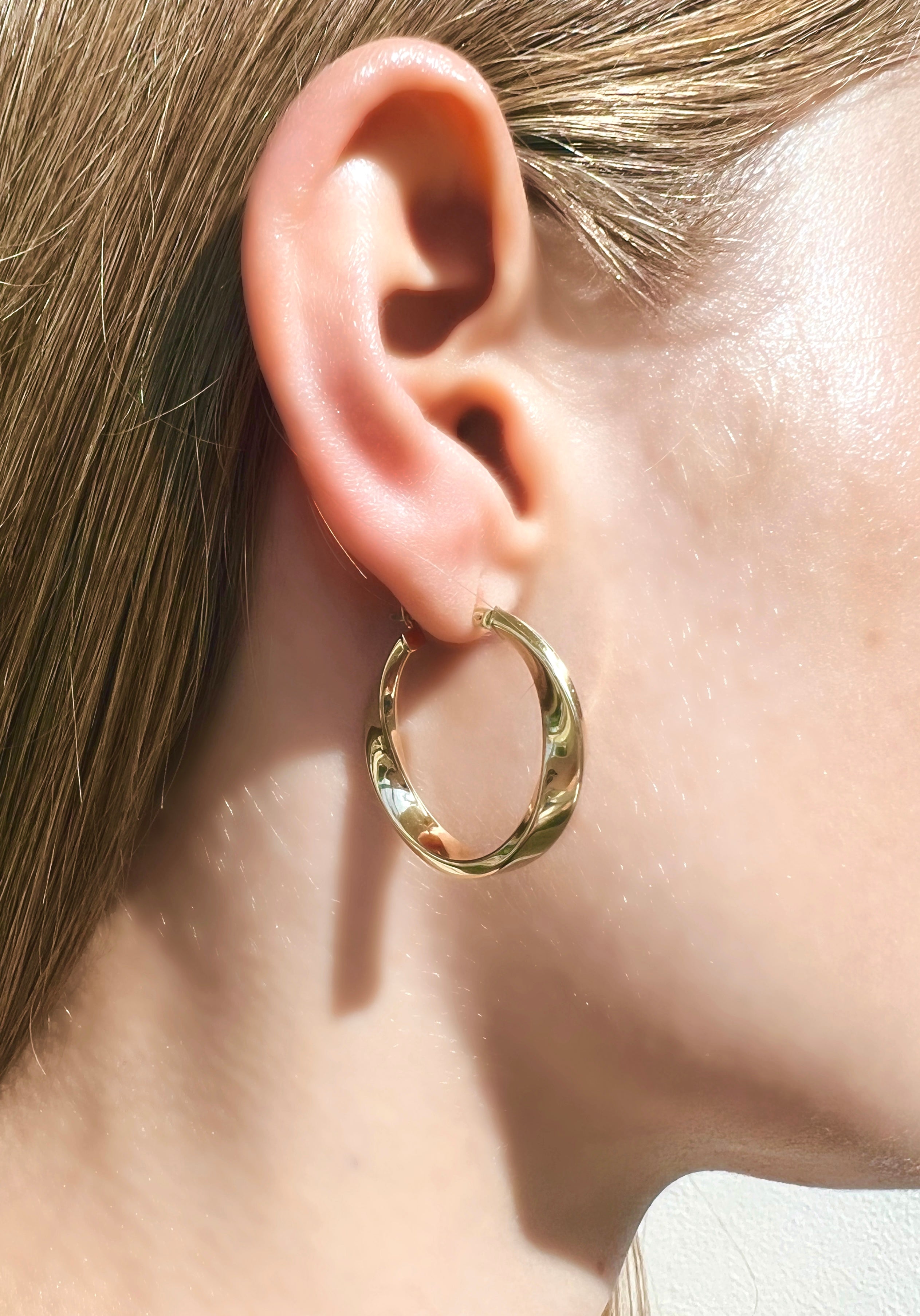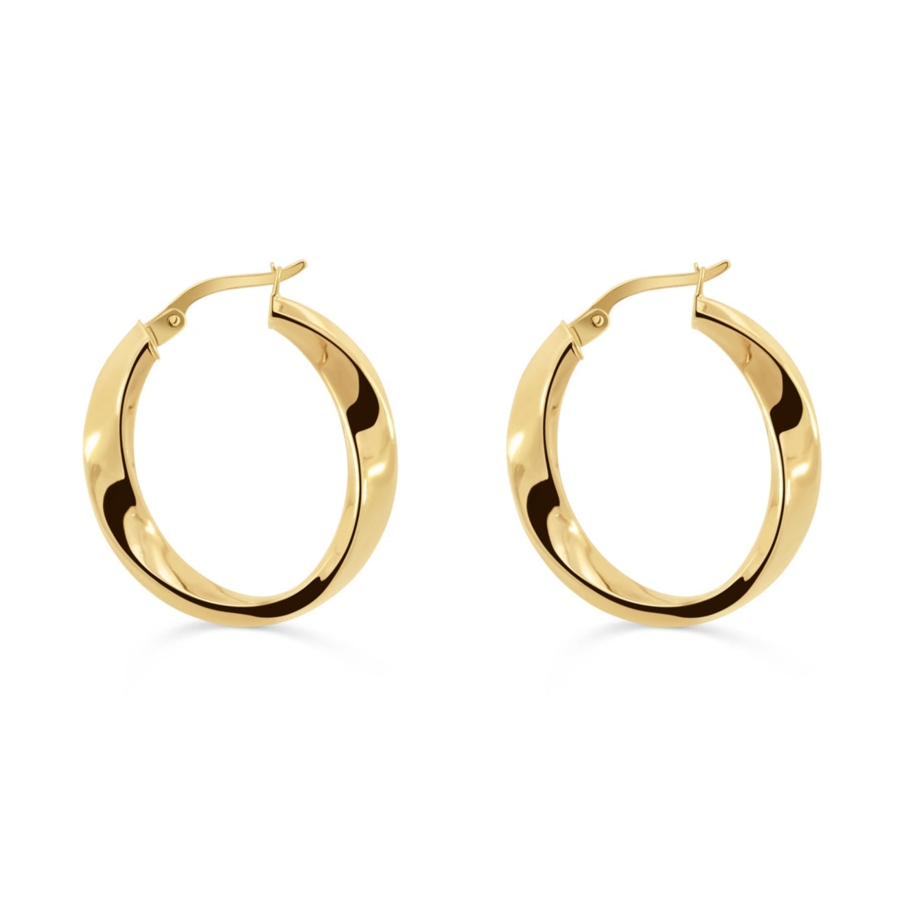 Crafted with a high-polish finish, these 1-inch gold hoops are designed to add a radiant glow to any look. Their sleek, curved silhouette offers a contemporary twist on a classic design, making them the perfect staple for both everyday wear and special occasions. Lightweight and comfortable, these gold hoops for women complement any style effortlessly. Elevate your jewelry collection with these luxury gold earrings, a must-have for those who appreciate refined eleganceand superior craftsmanship.