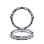 COUTURE-0420W-2T Classic Wedding band pave with round brilliant diamonds featuring full Signature Beading profile completed with the Couture pointed shank and Verragio Bezel immersed.