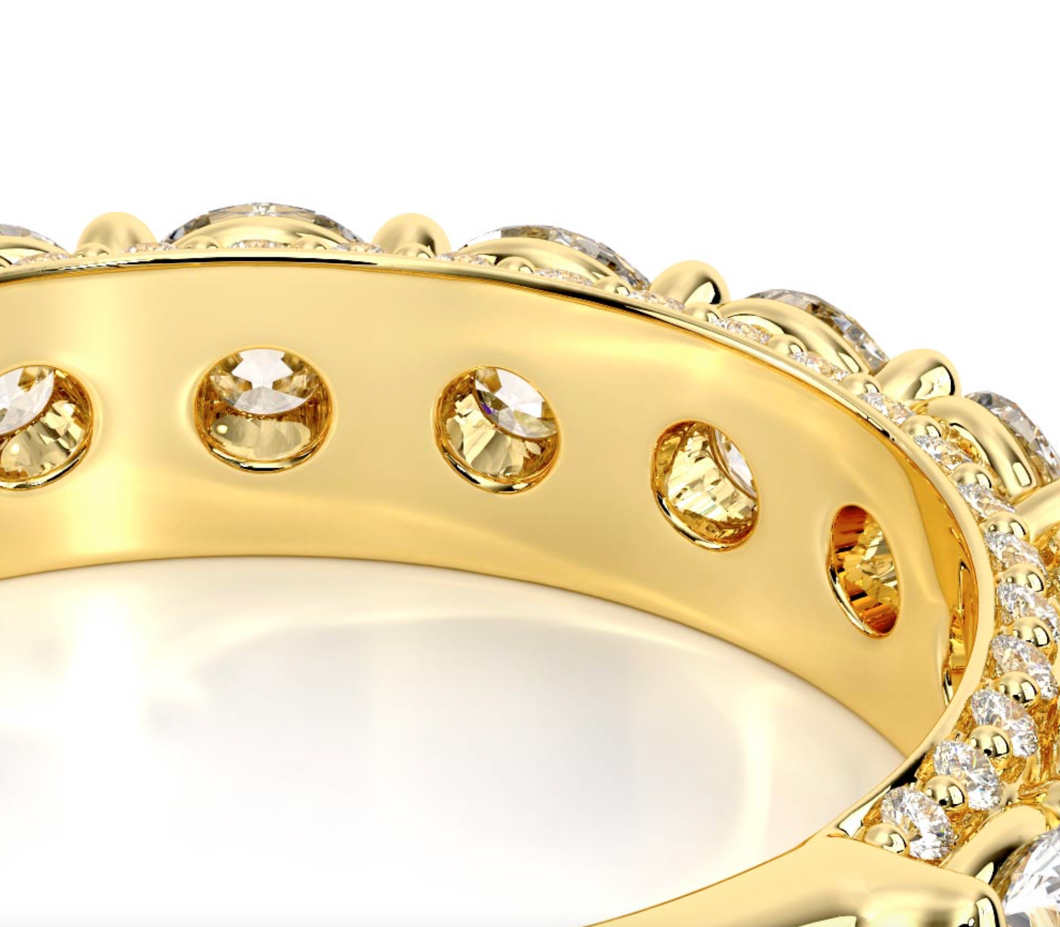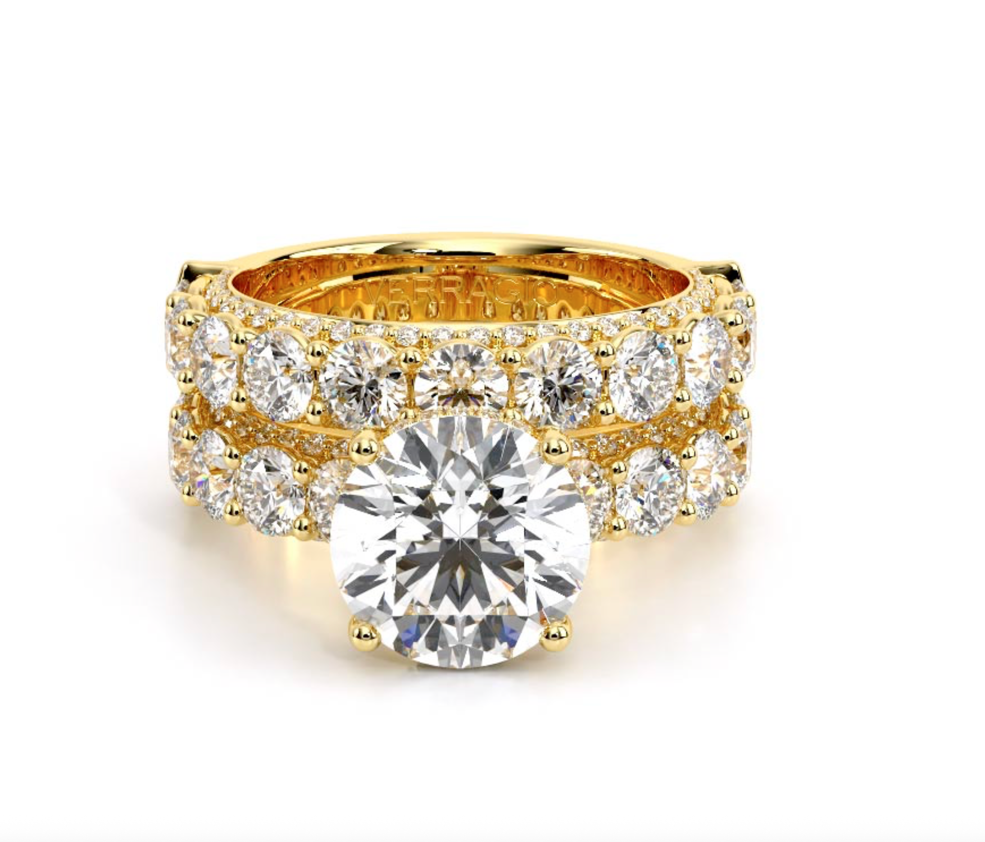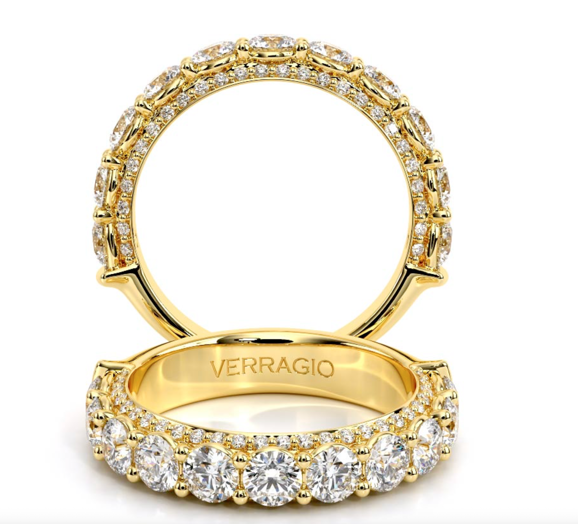 Couture-0489W3.4 is meticulously set with round diamonds in a shared-prong setting, artfully nestled in an elegant shank. A pave-set three-quarter diamond riviera seamlessly completes the sophisticated design.
