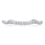 A uniquely curved band resembles a wave, and round-brilliant diamonds add brilliance to the ceiling. Pinpoint diamonds and careful beading decorate the Coastal Crescent fabric on the inner face silhouette.