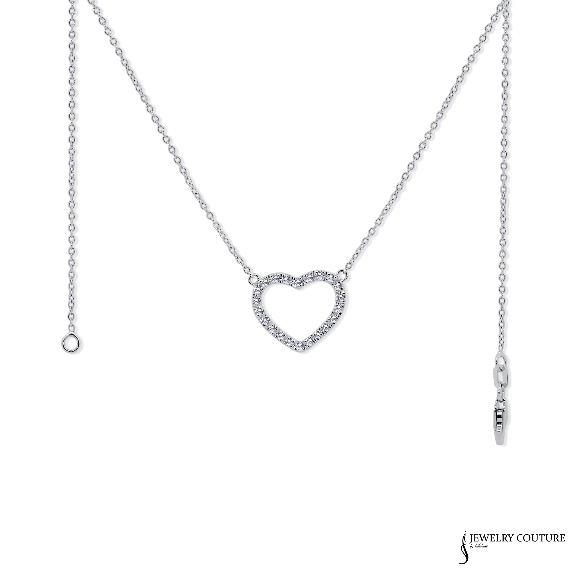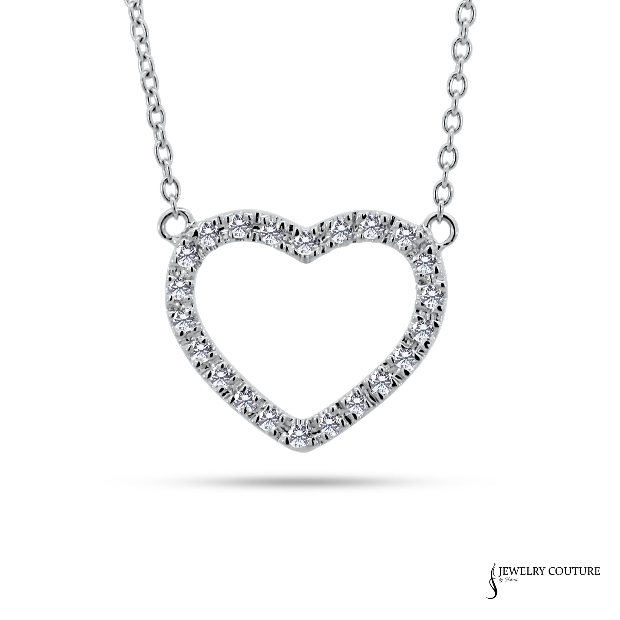 Celebrate timeless elegance with this exquisite 14KT White Gold Diamond Heart Necklace. Featuring 0.22CT total weight of dazzling round diamonds, this necklace showcases a delicate open-heart design that symbolizes love and grace. The shimmering diamonds are expertly set to enhance their brilliance against the sleek white gold frame.