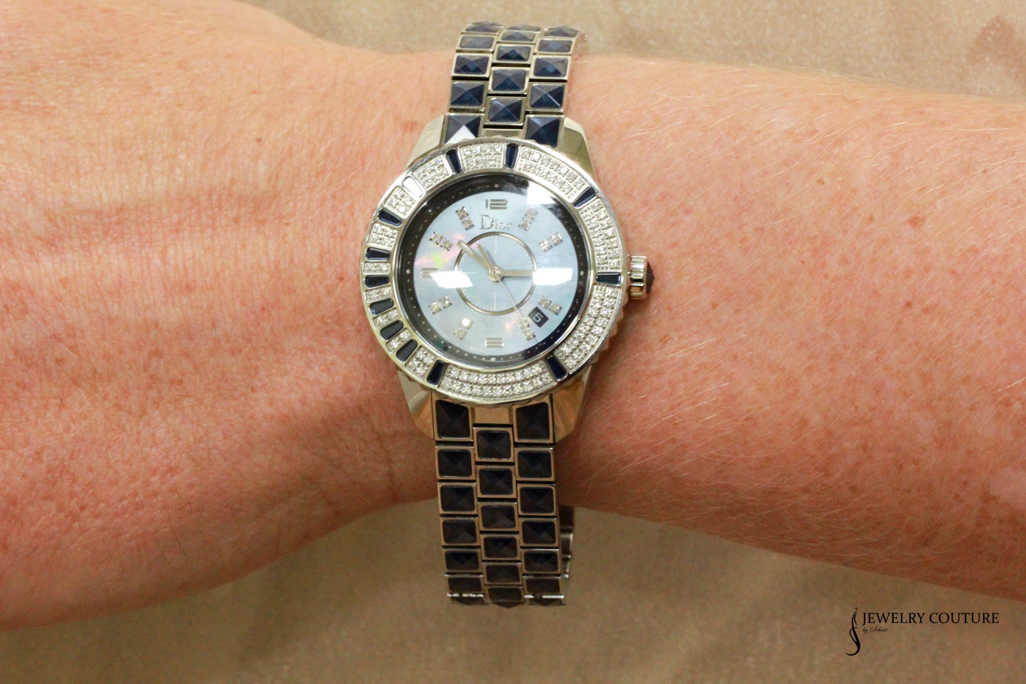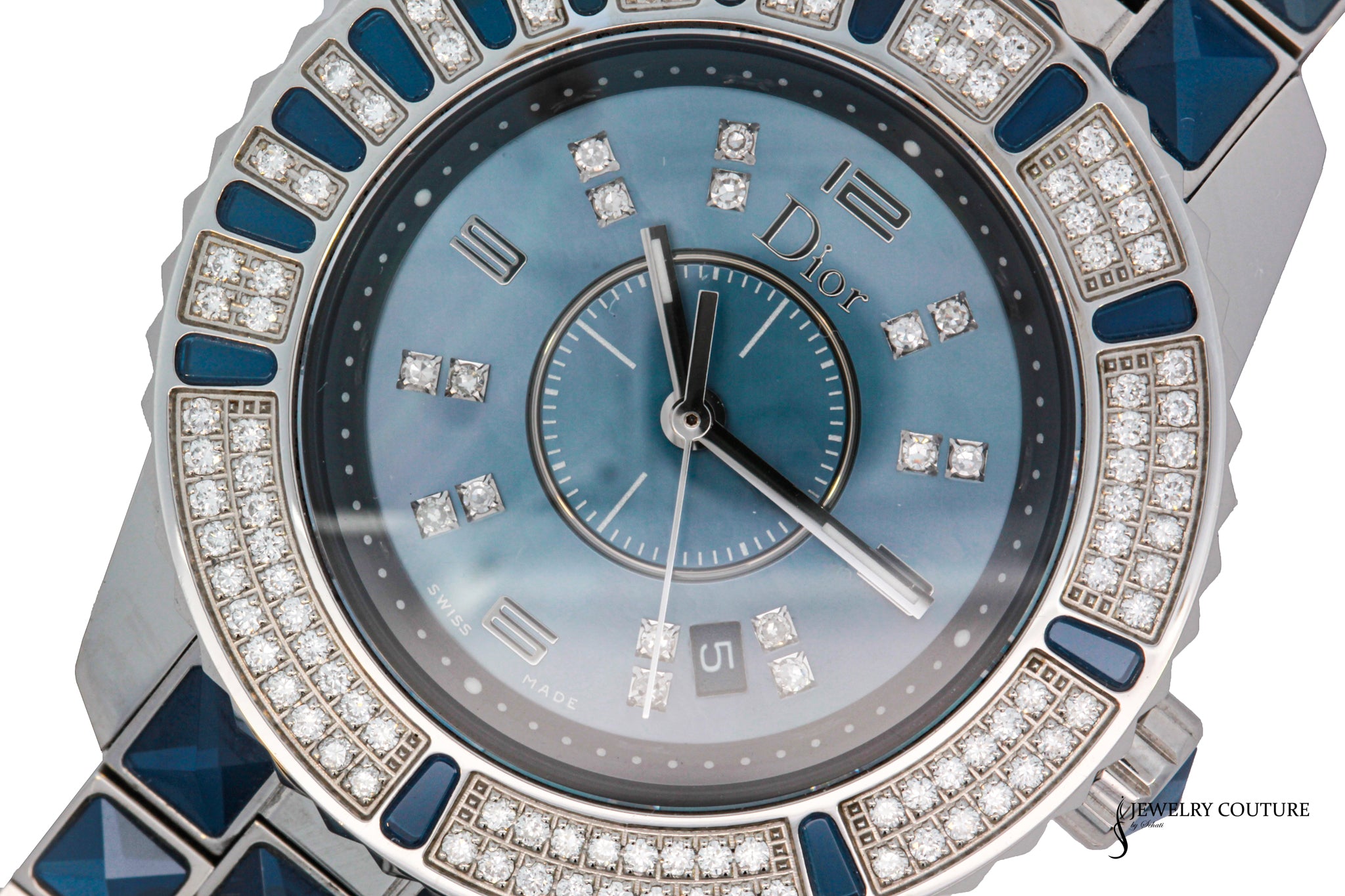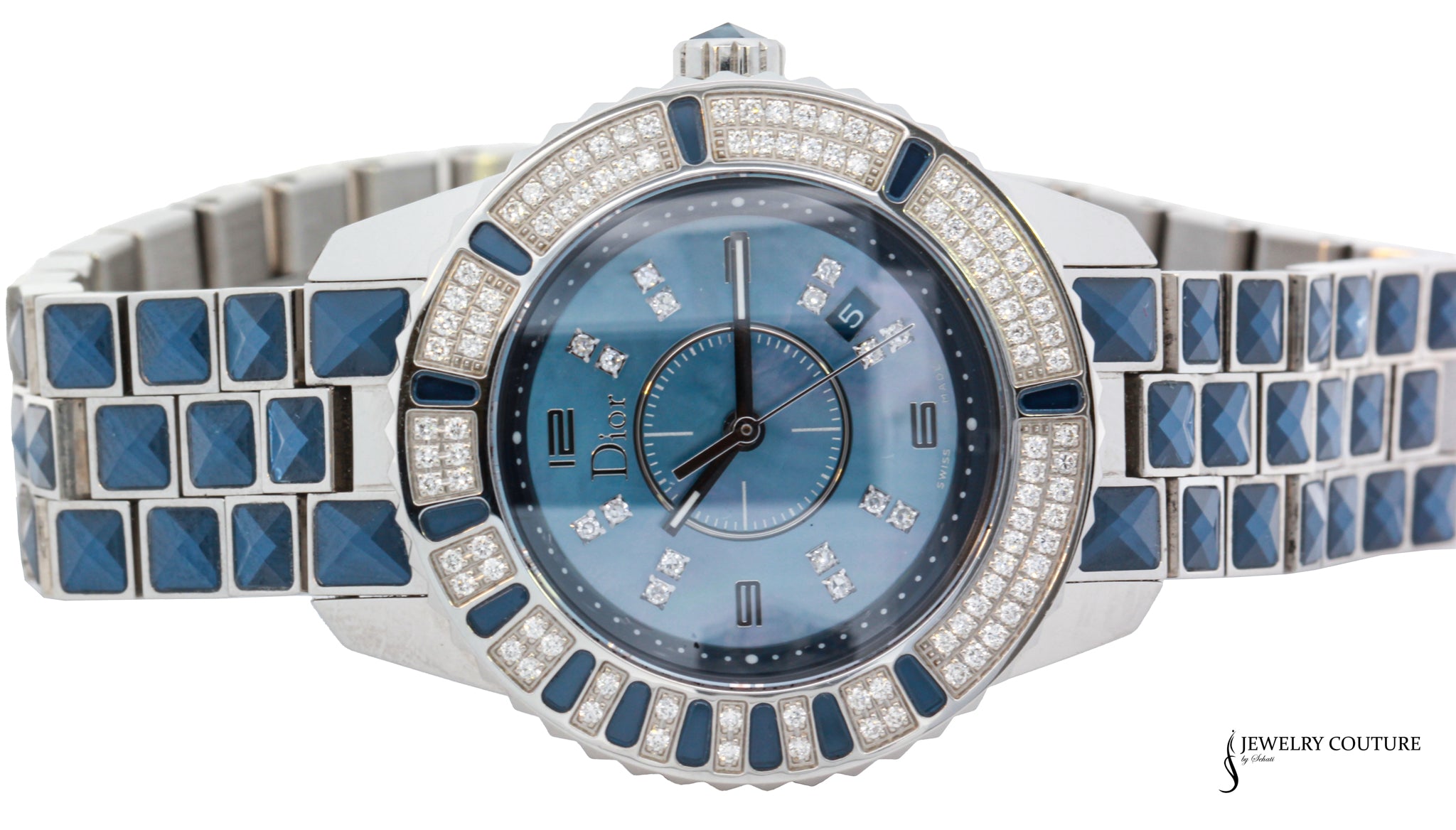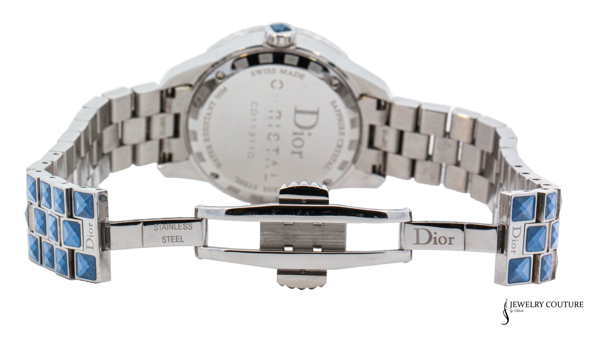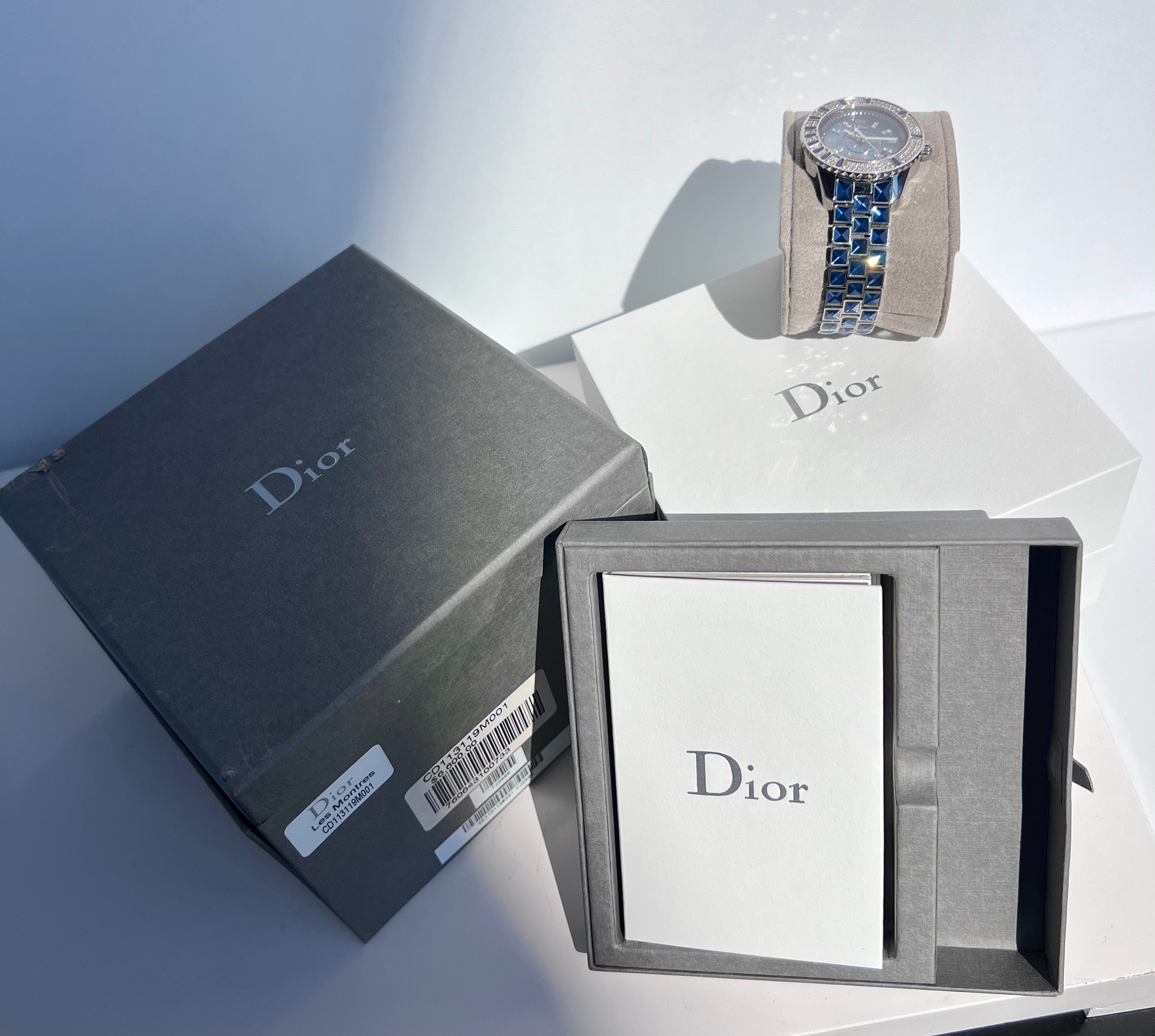 Authentic Dior Blue Sapphire Crystal Watch – 33MM Stainless Steel with 233 Diamonds