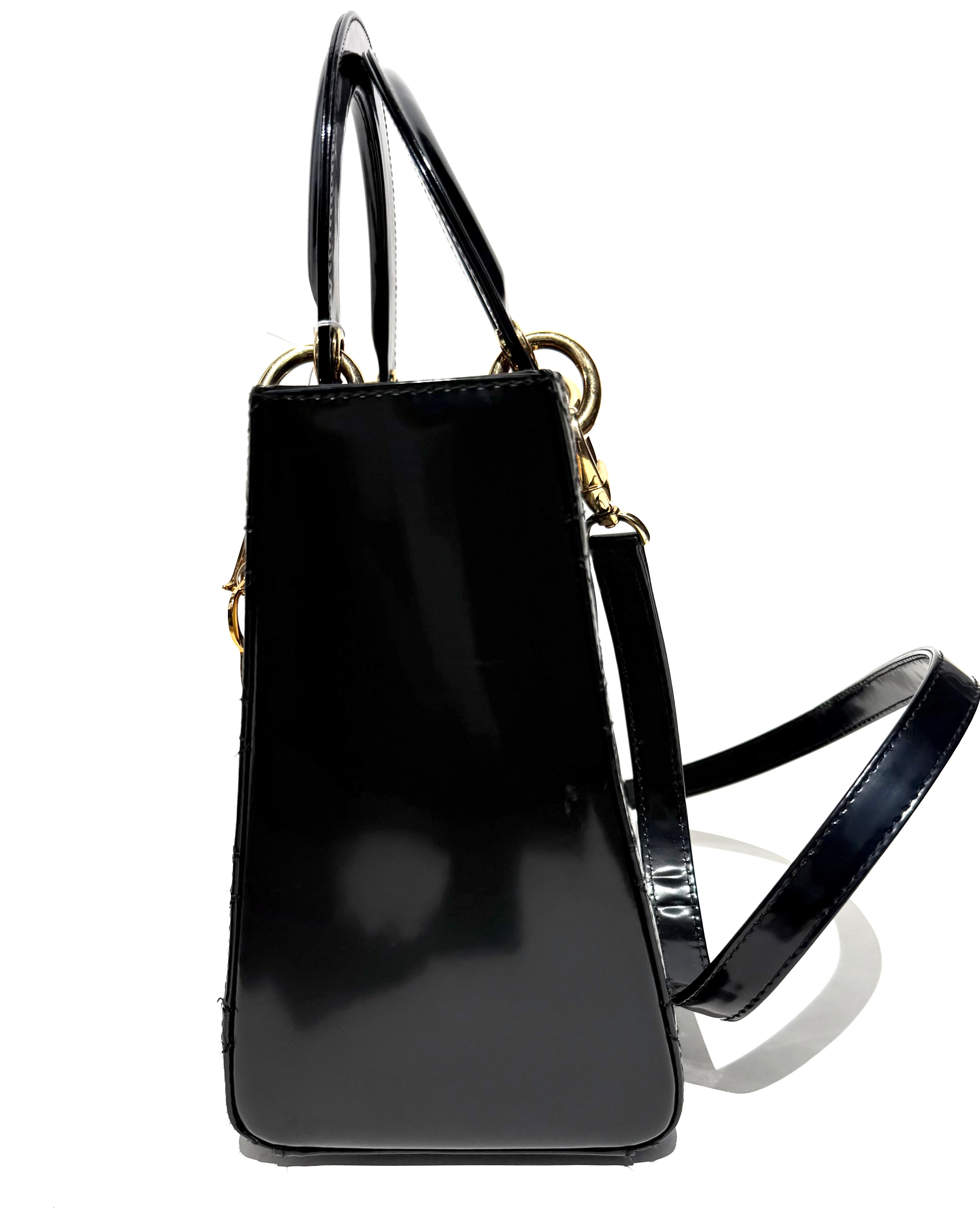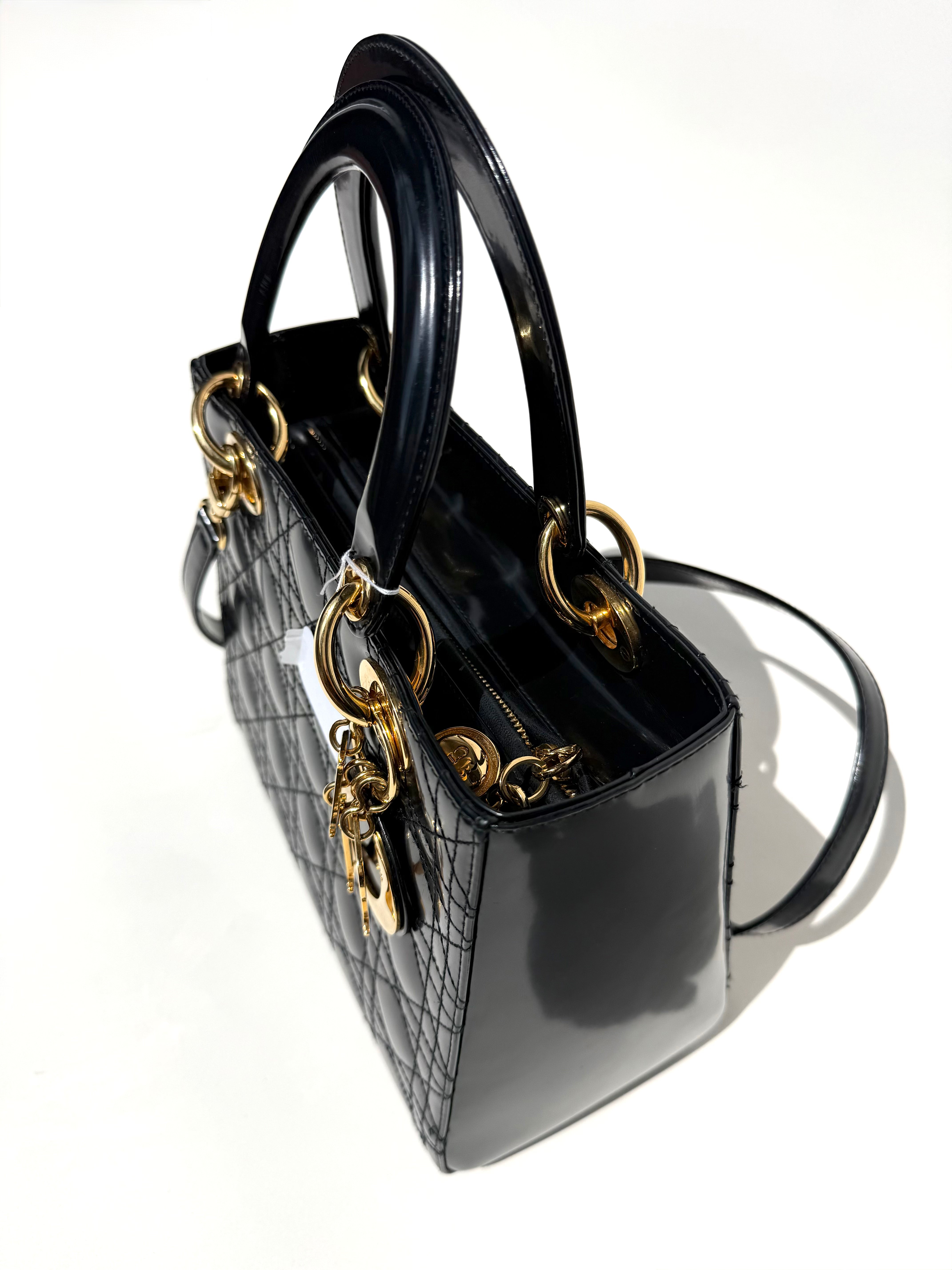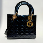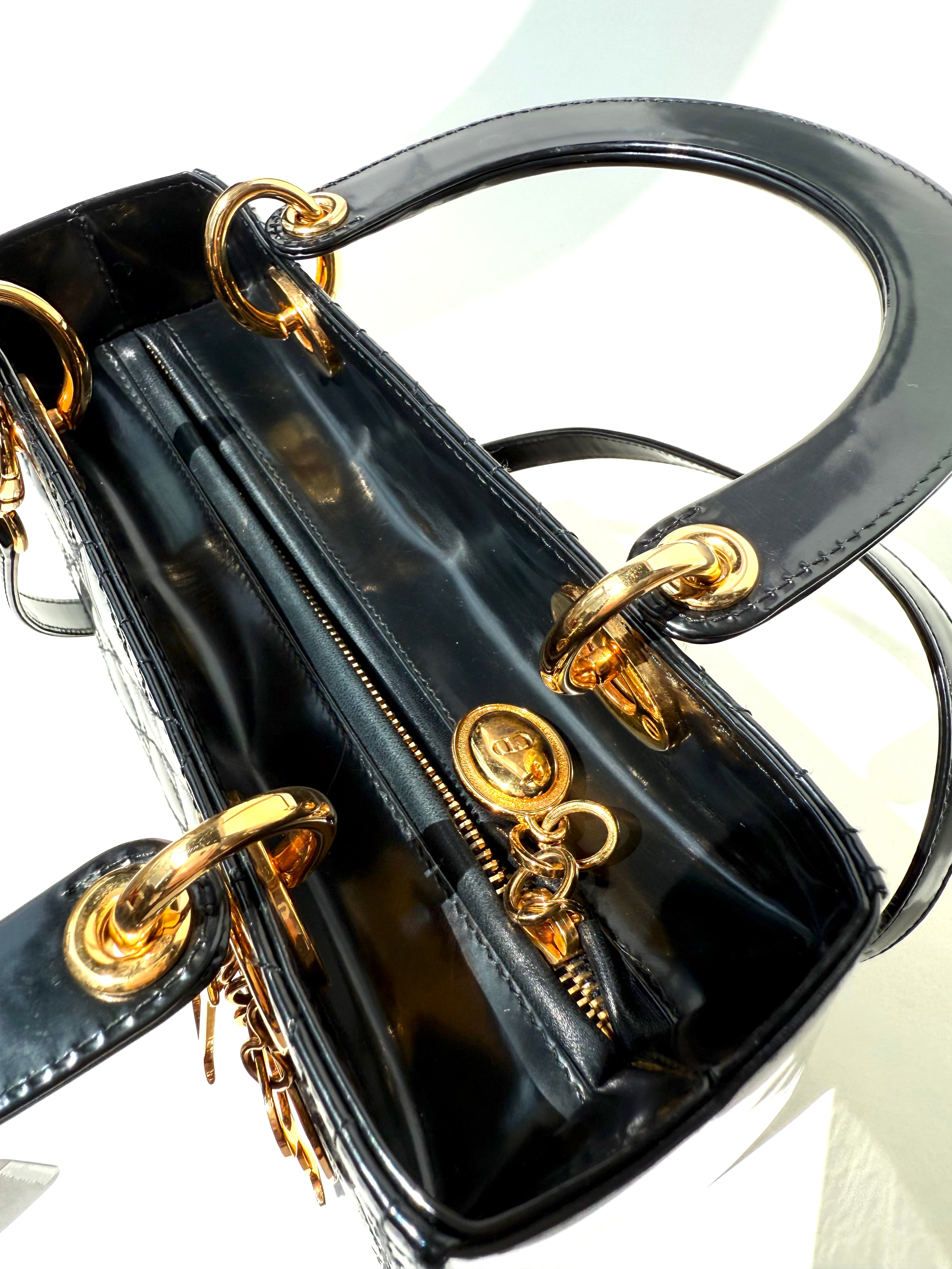 Dior Black Patent Cannage Calfskin 2-Way Medium Lady Dior Bag - Pre-Owned