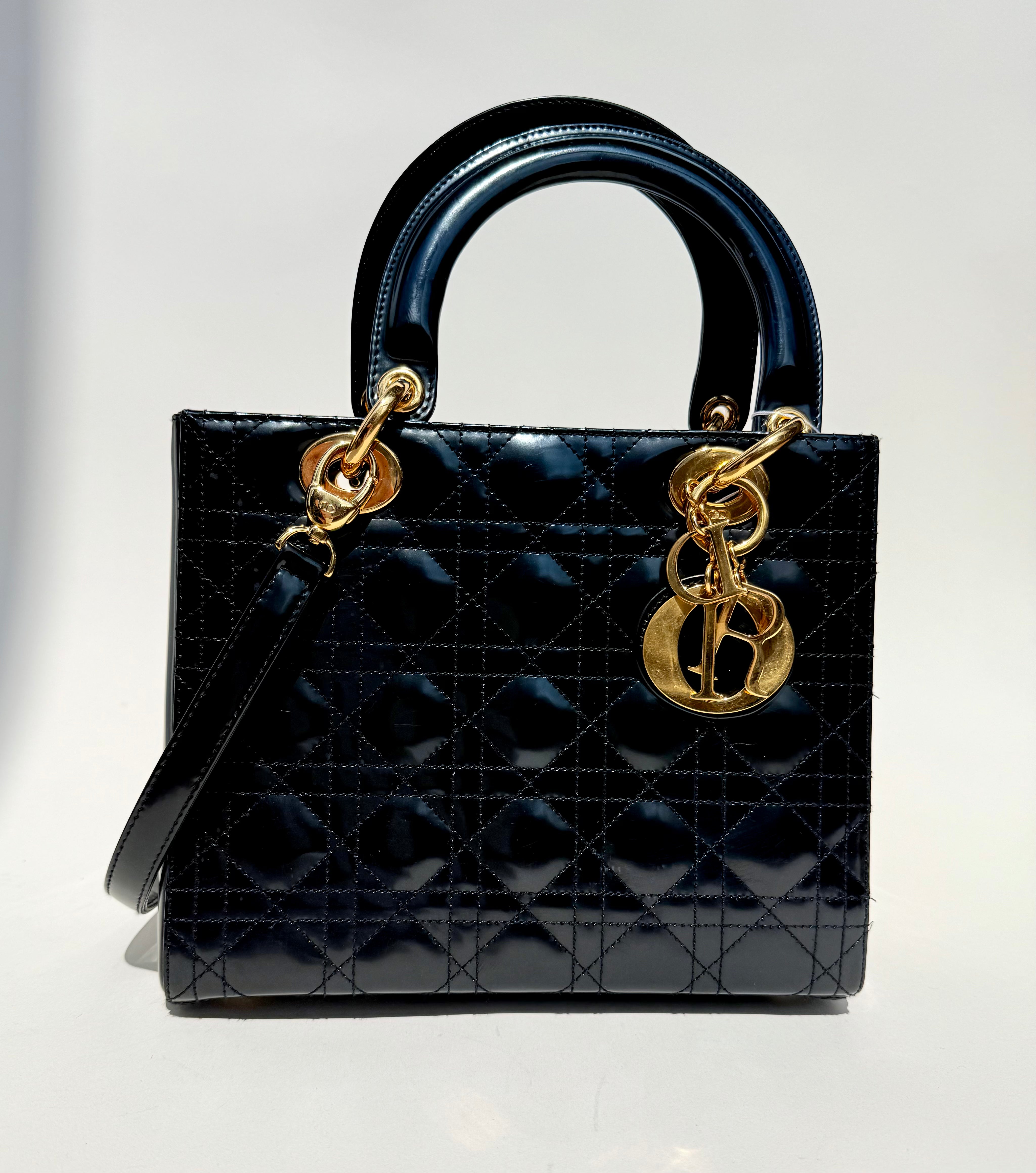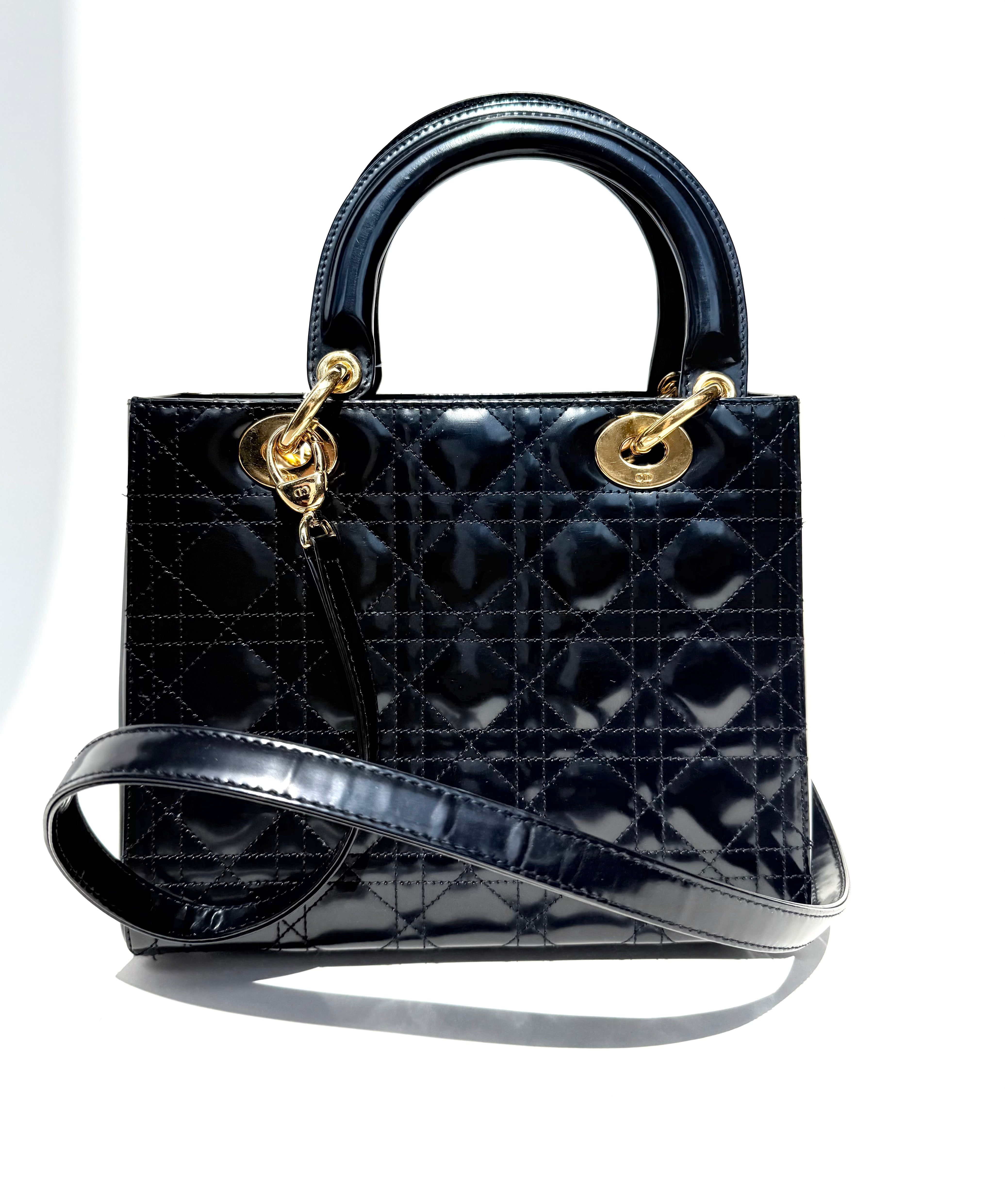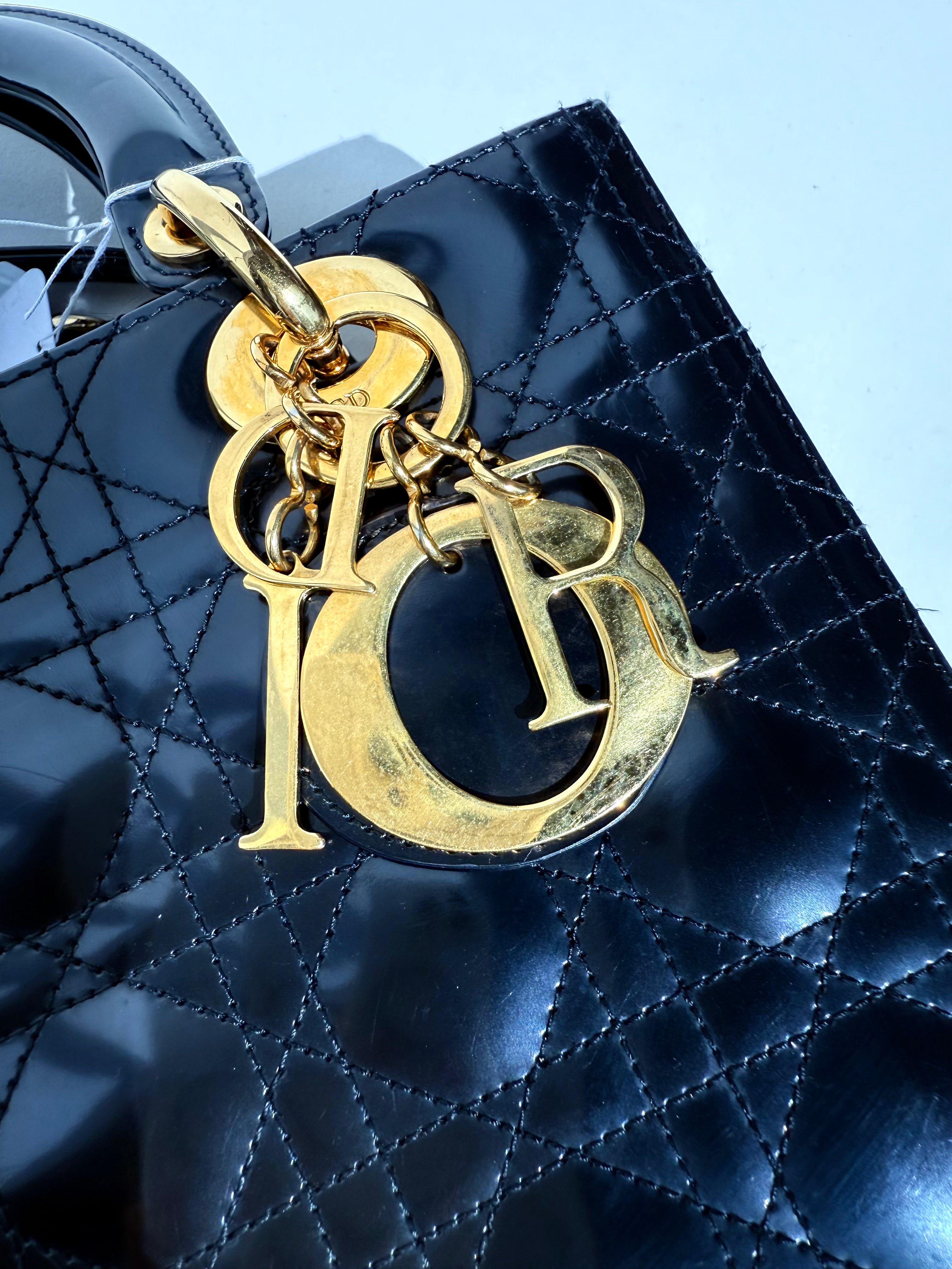 Dior Black Patent Cannage Calfskin 2-Way Medium Lady Dior Bag - Pre-Owned