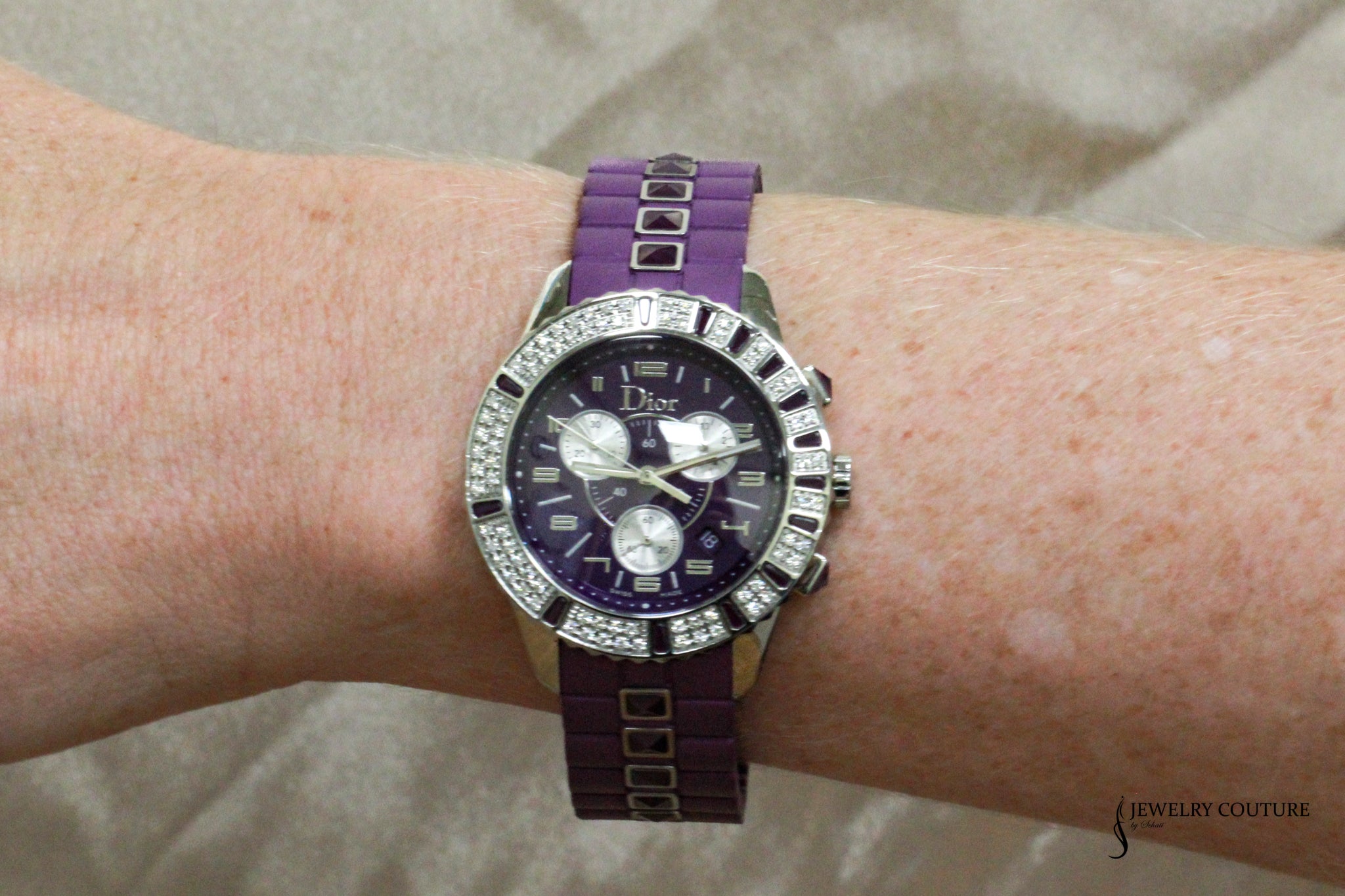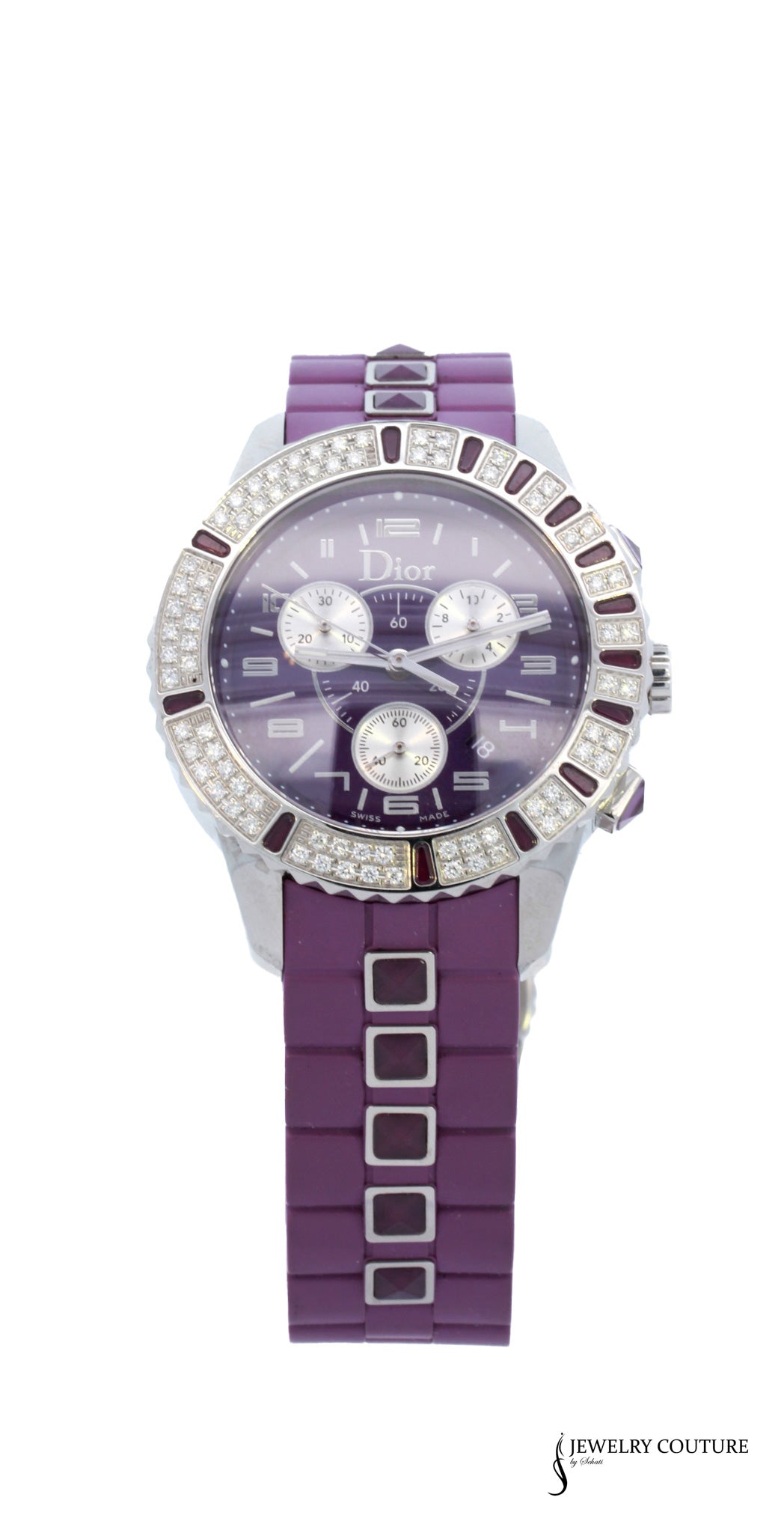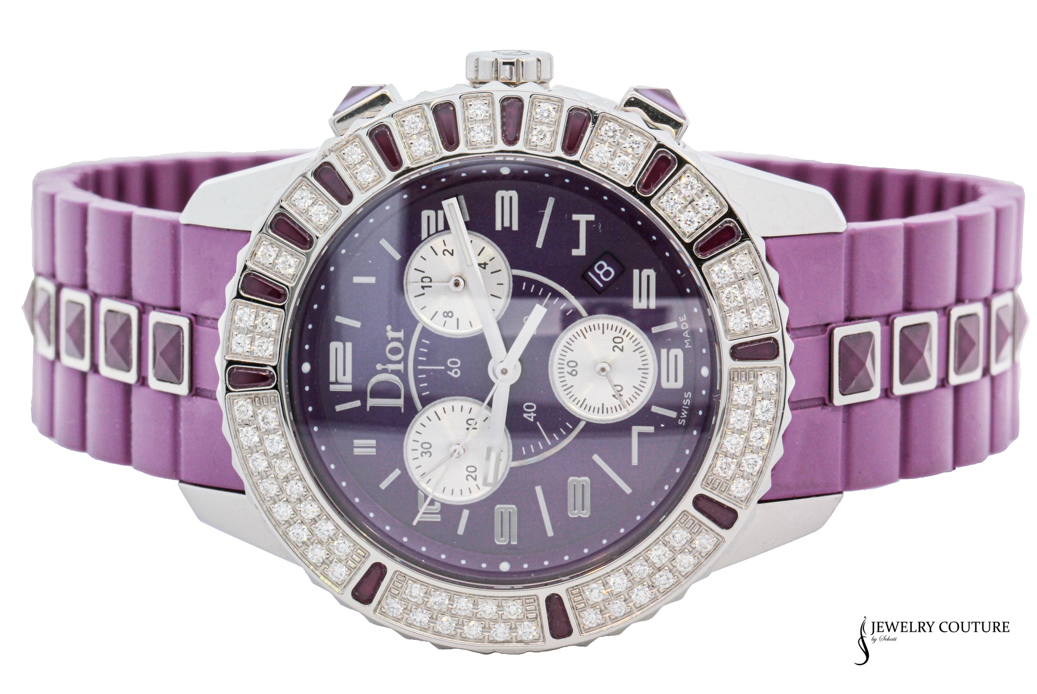 Dior - 38mm Purple Ruby and Purple Crystal Dial Chronograph Watch Authentic