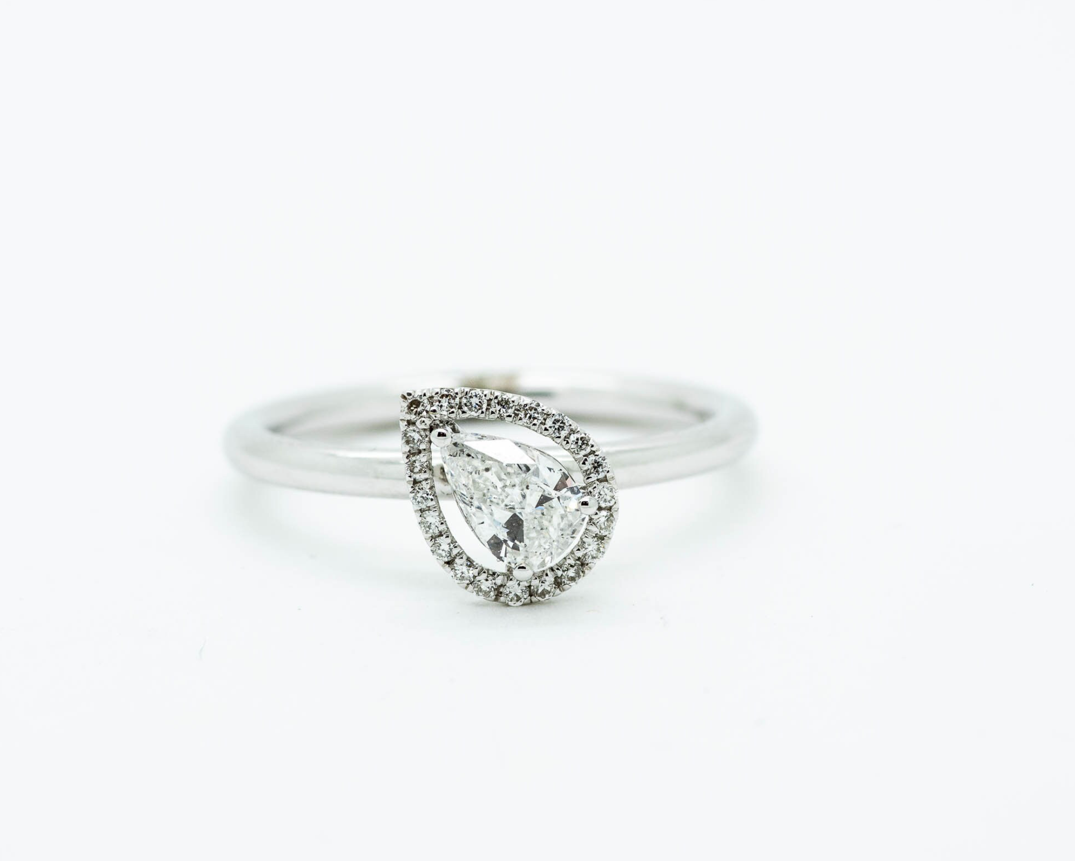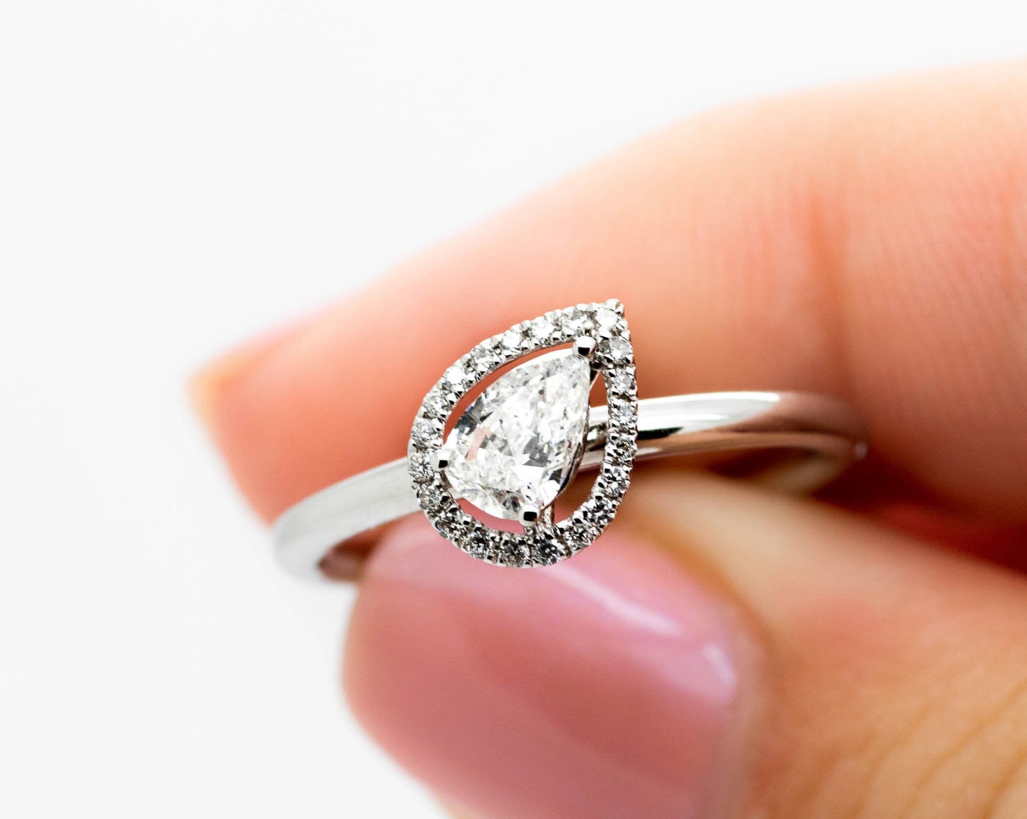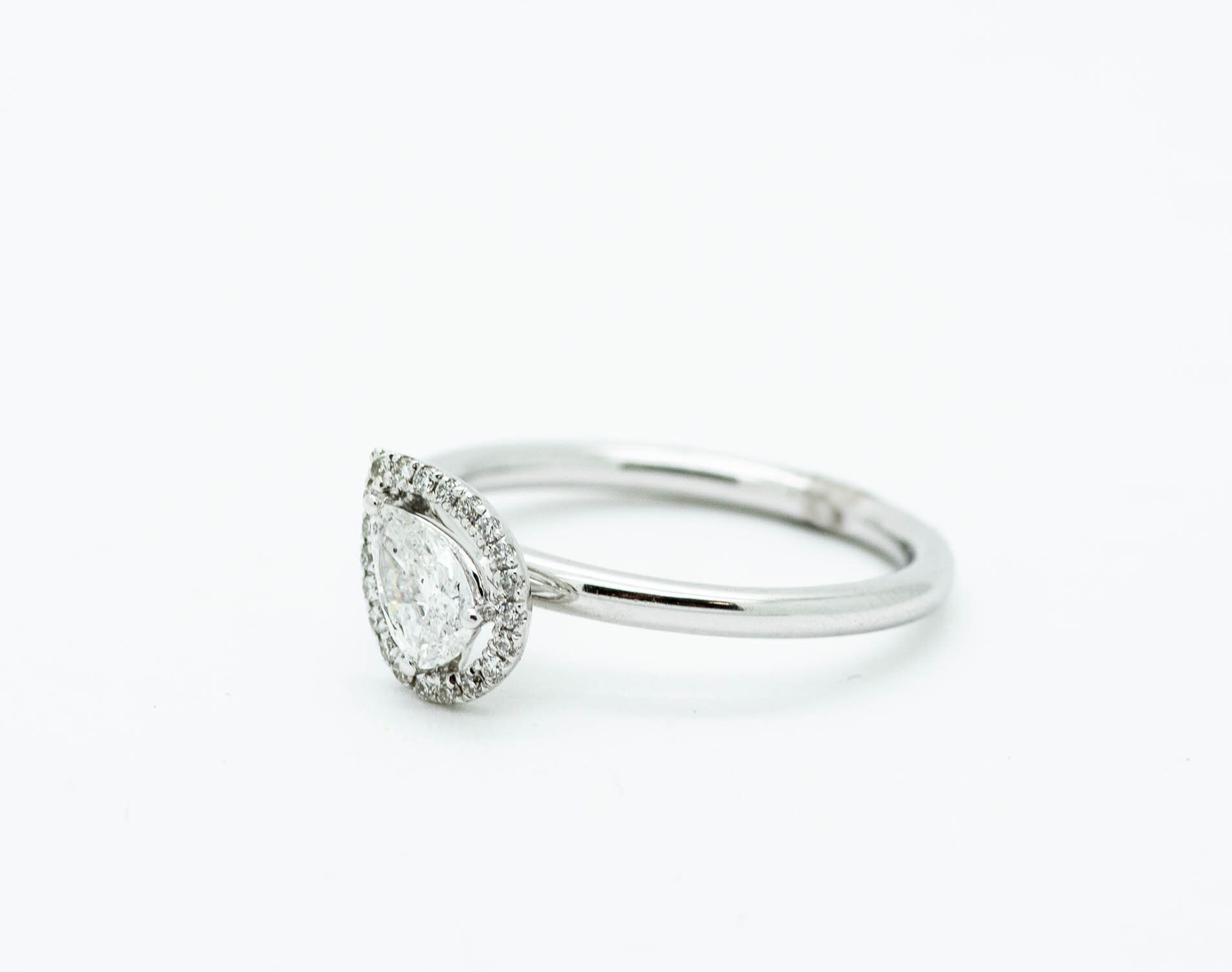 Elevate your style with the Dittany 14KT White Gold Pear Diamond Stackable Halo Ring. Crafted with a stunning 0.37CT pear cut, this ring features a 0.09CT halo for added glamour. Perfect for stacking or wearing alone, this ring is a must-have for any jewelry collection.