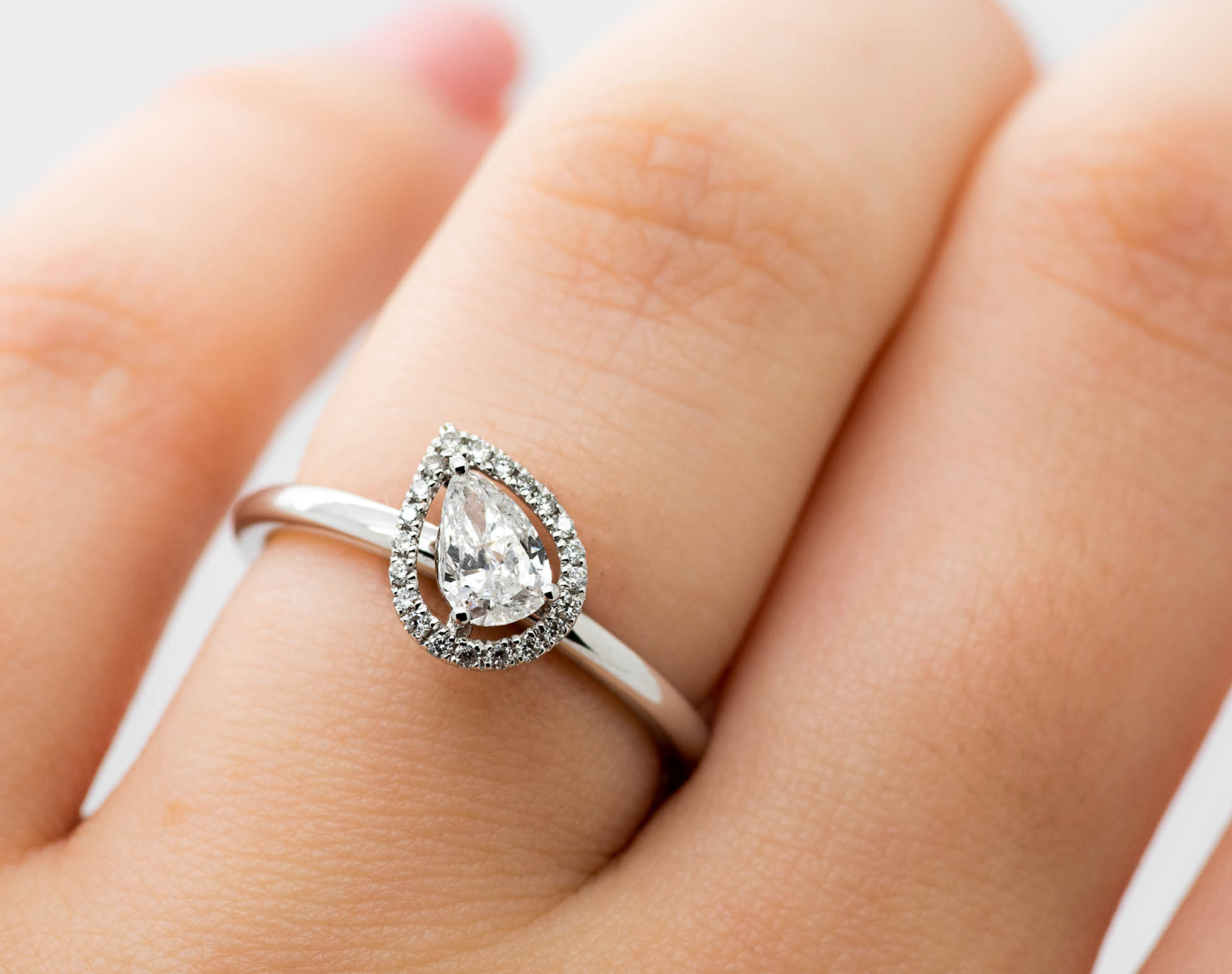 Dittany - 14KT White Gold Pear Diamond Stackable Halo Ring