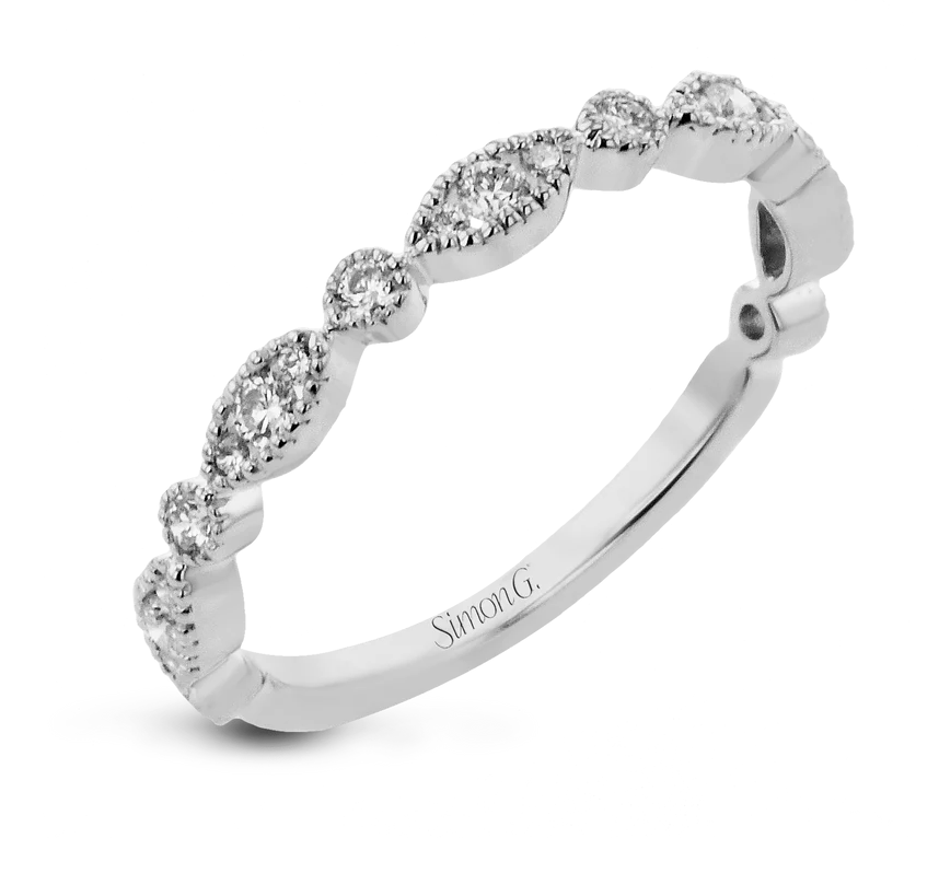 This ring is perfect for stacking with a distinctive design set with distinct clusters of sparkling diamonds.