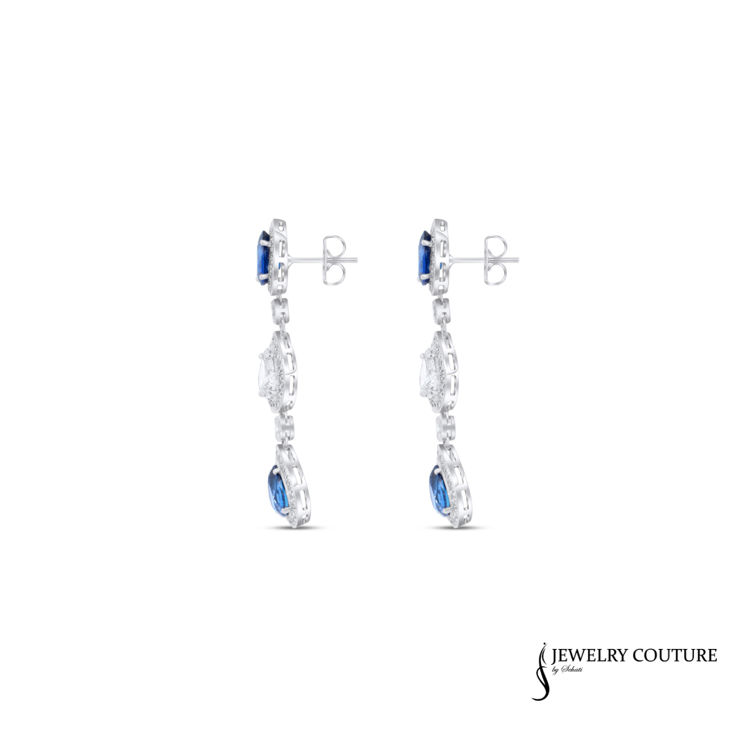 Gentian - 14KT White Gold Pear Blue Sapphire and Diamond Earrings