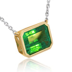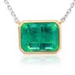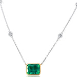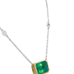 Gold Emerald Necklace 18KT Two-Tone with Emerald & Diamond Accents – Elegant Bezel Setting