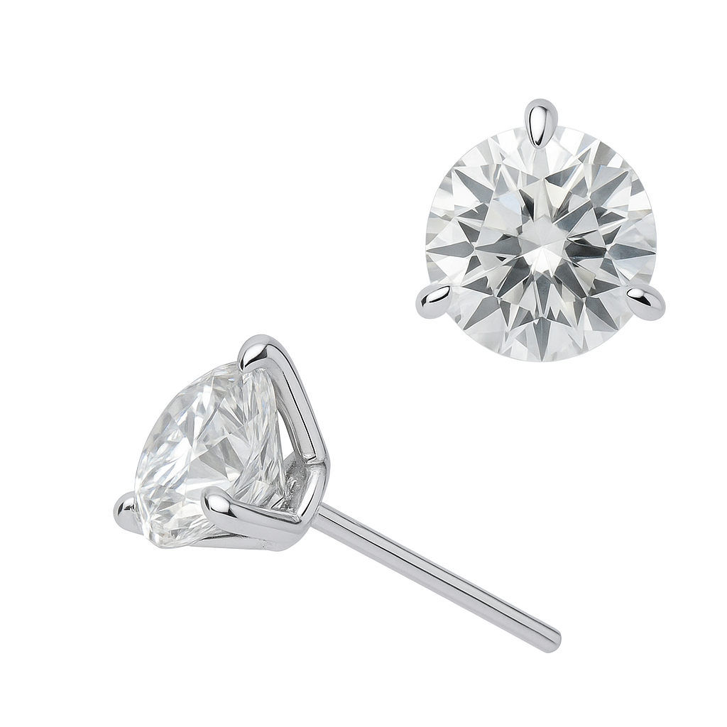 14K Gold White 3-Prong Lab Grown Diamond Stud Earrings