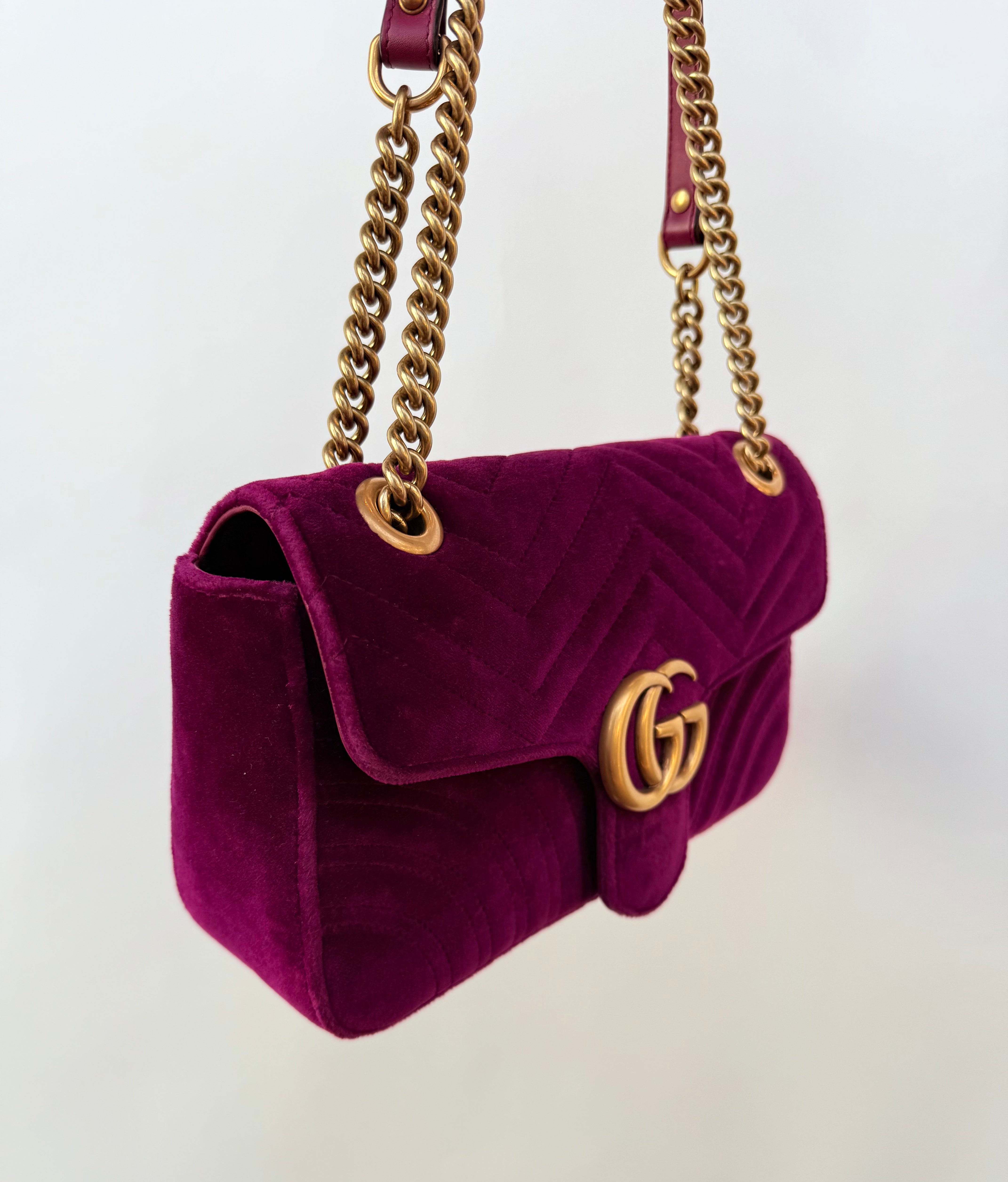 Gucci GG Marmont Flap Bag Matelasse Velvet Medium Pre-loved