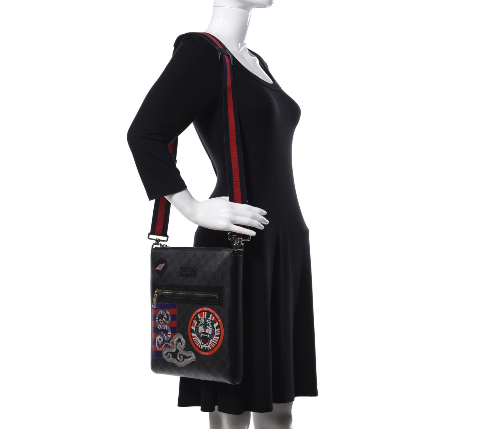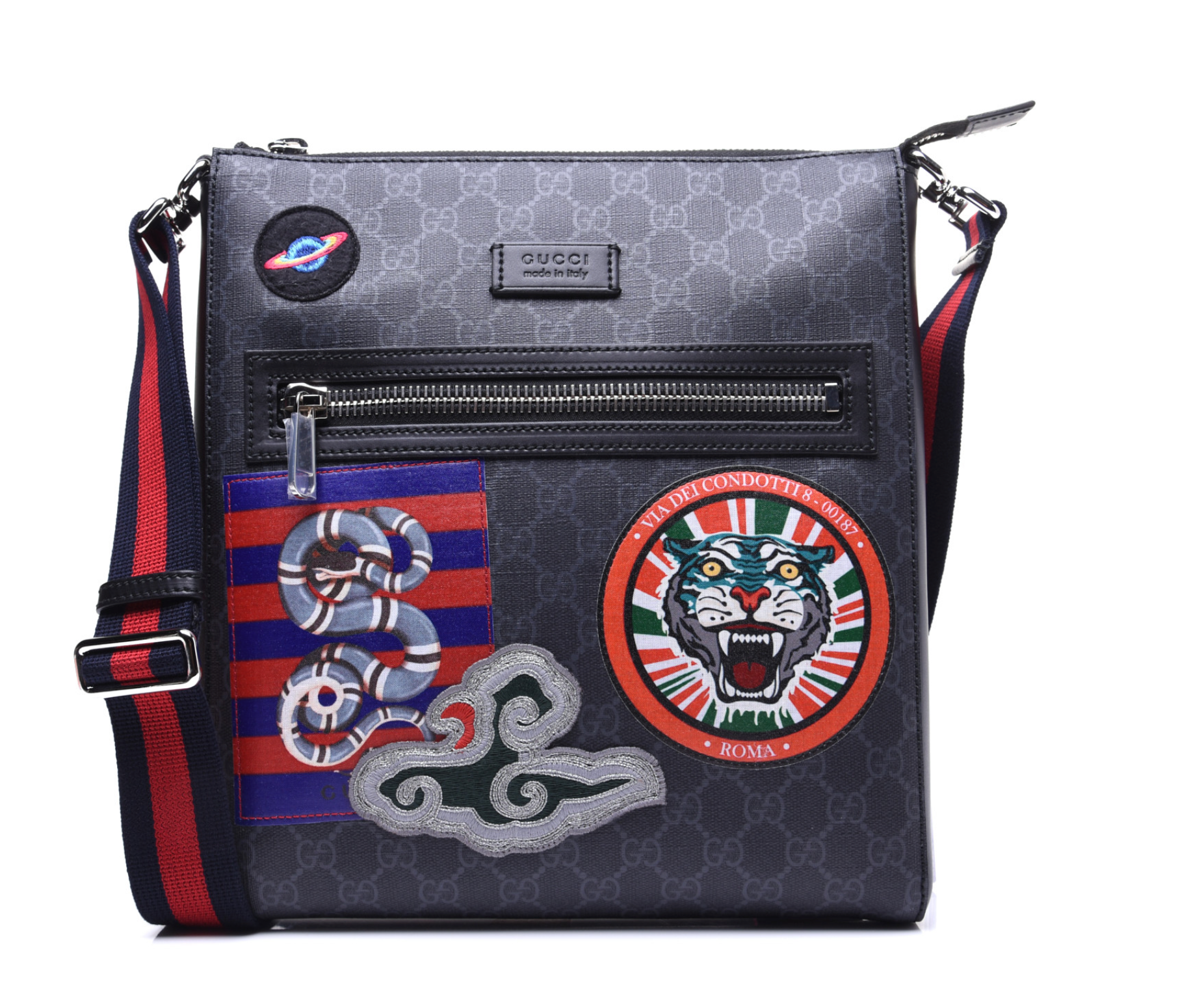 GUCCI GG Supreme Monogram Night Courrier Flat Messenger Bag Black Multicolor