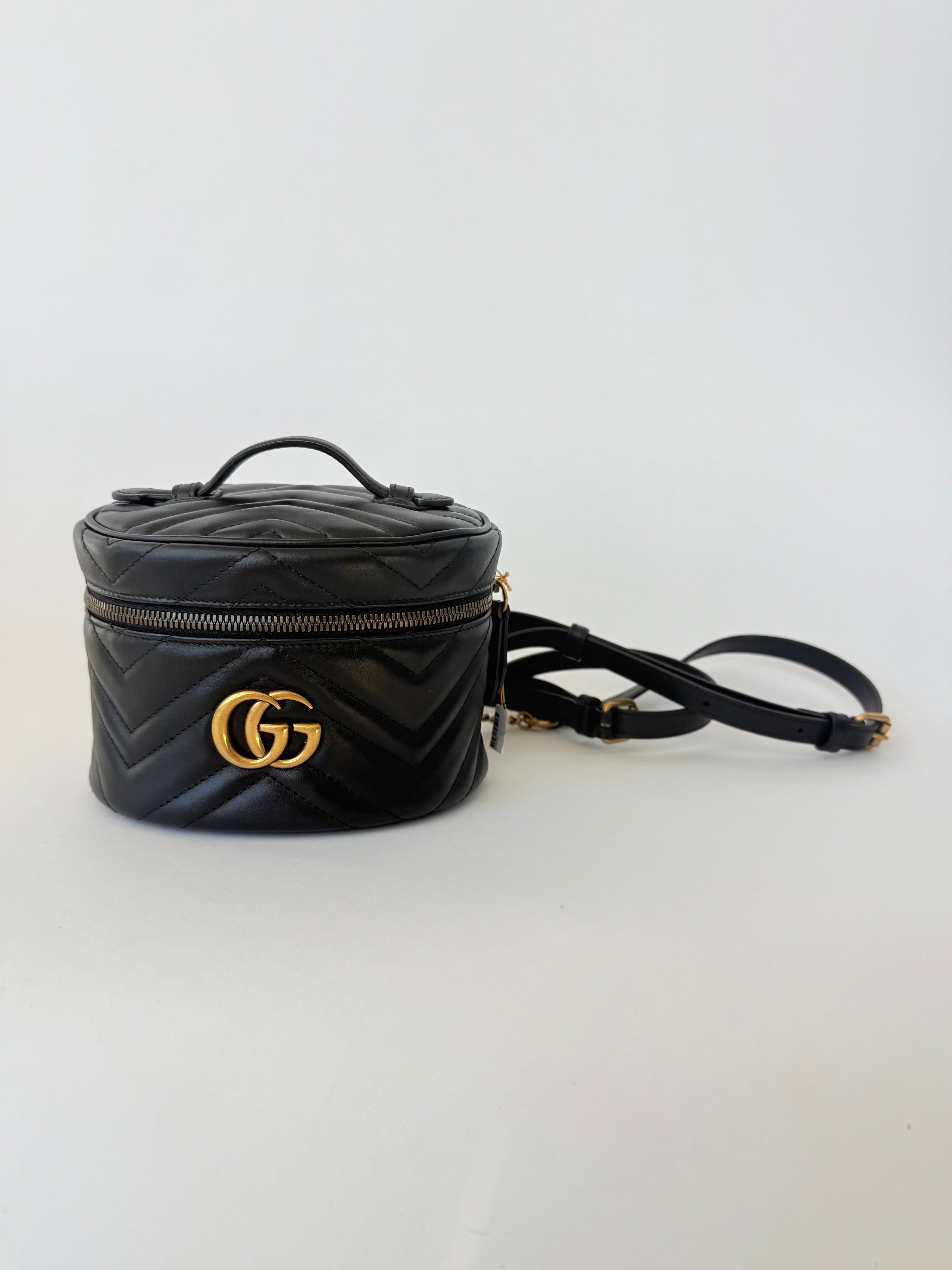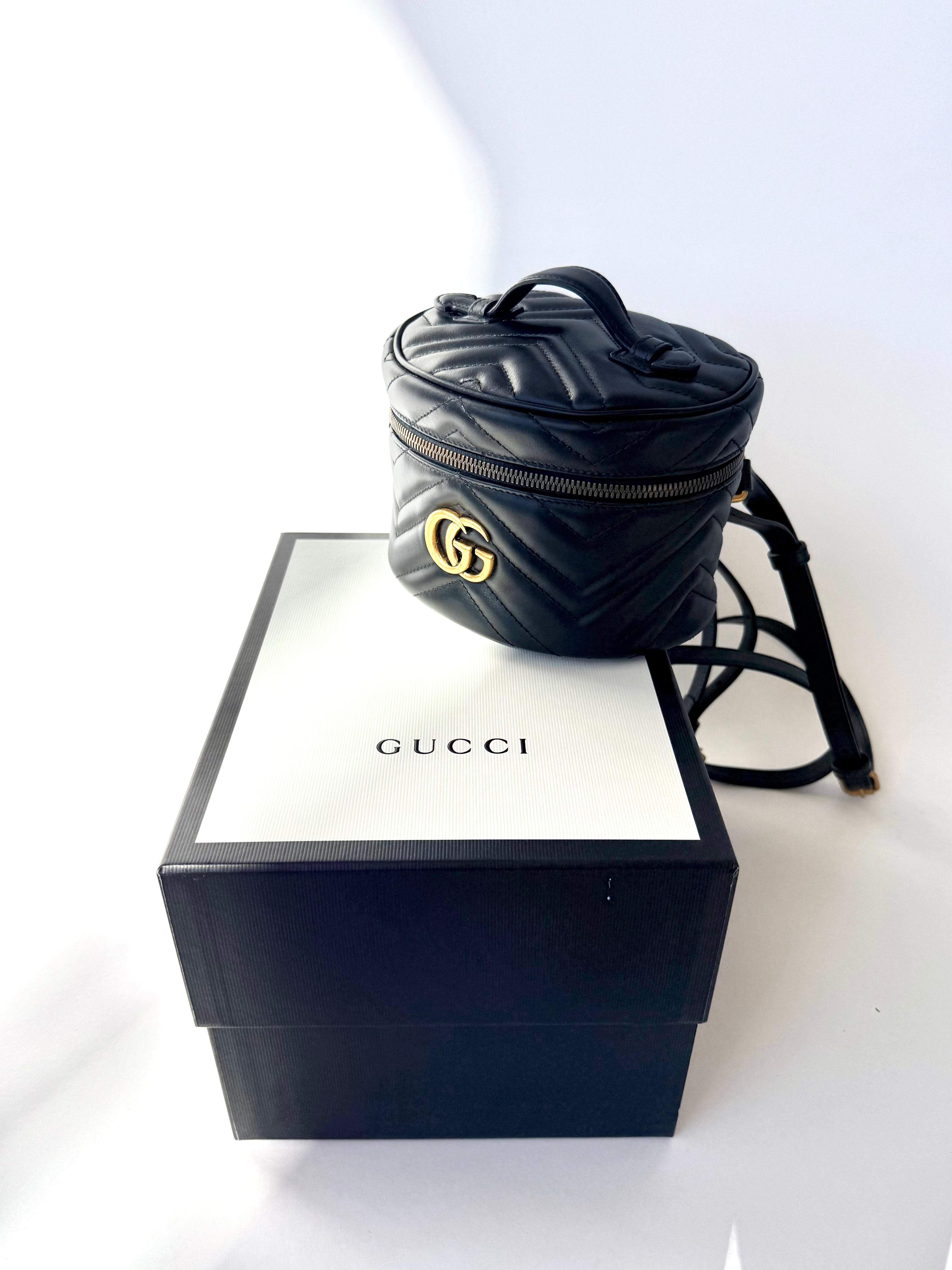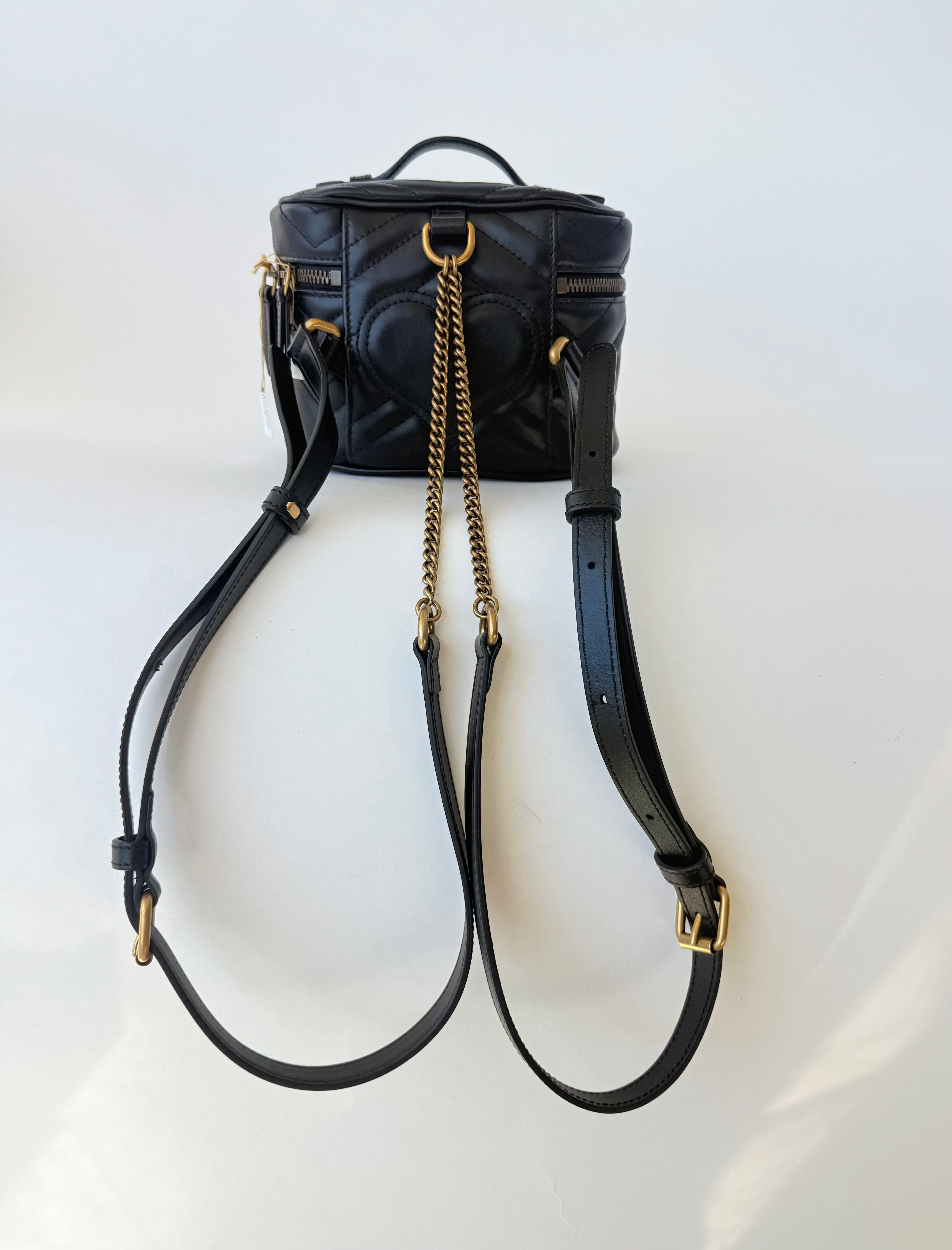 Gucci Leather Mini Marmont Vanity Backpack Black Pre-owned