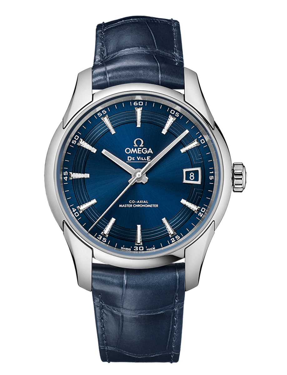 The OMEGA De Ville Hour Vision Blue features a striking blue dial with a blue hour track and 18K white gold hour, minute and seconds hands.