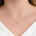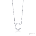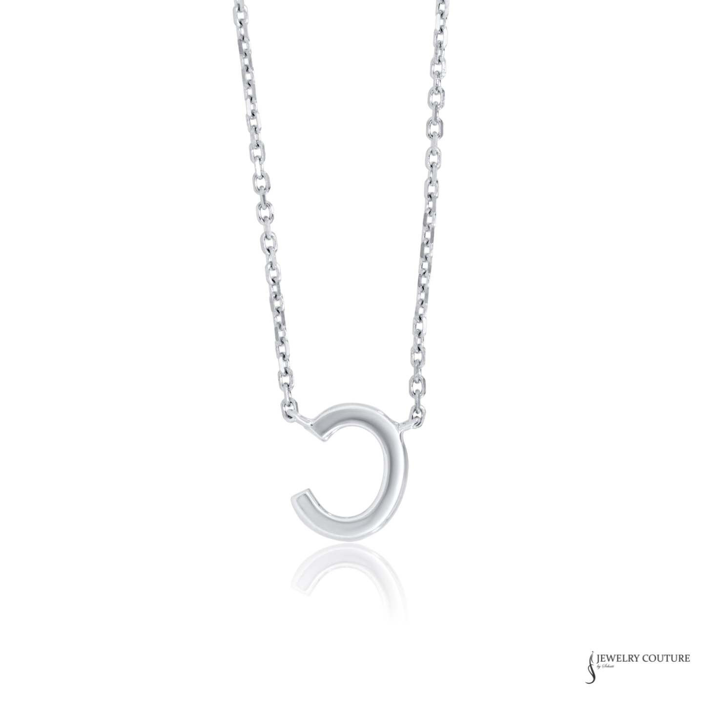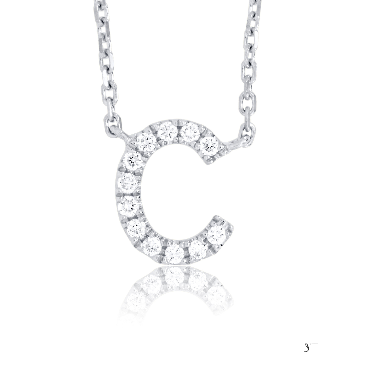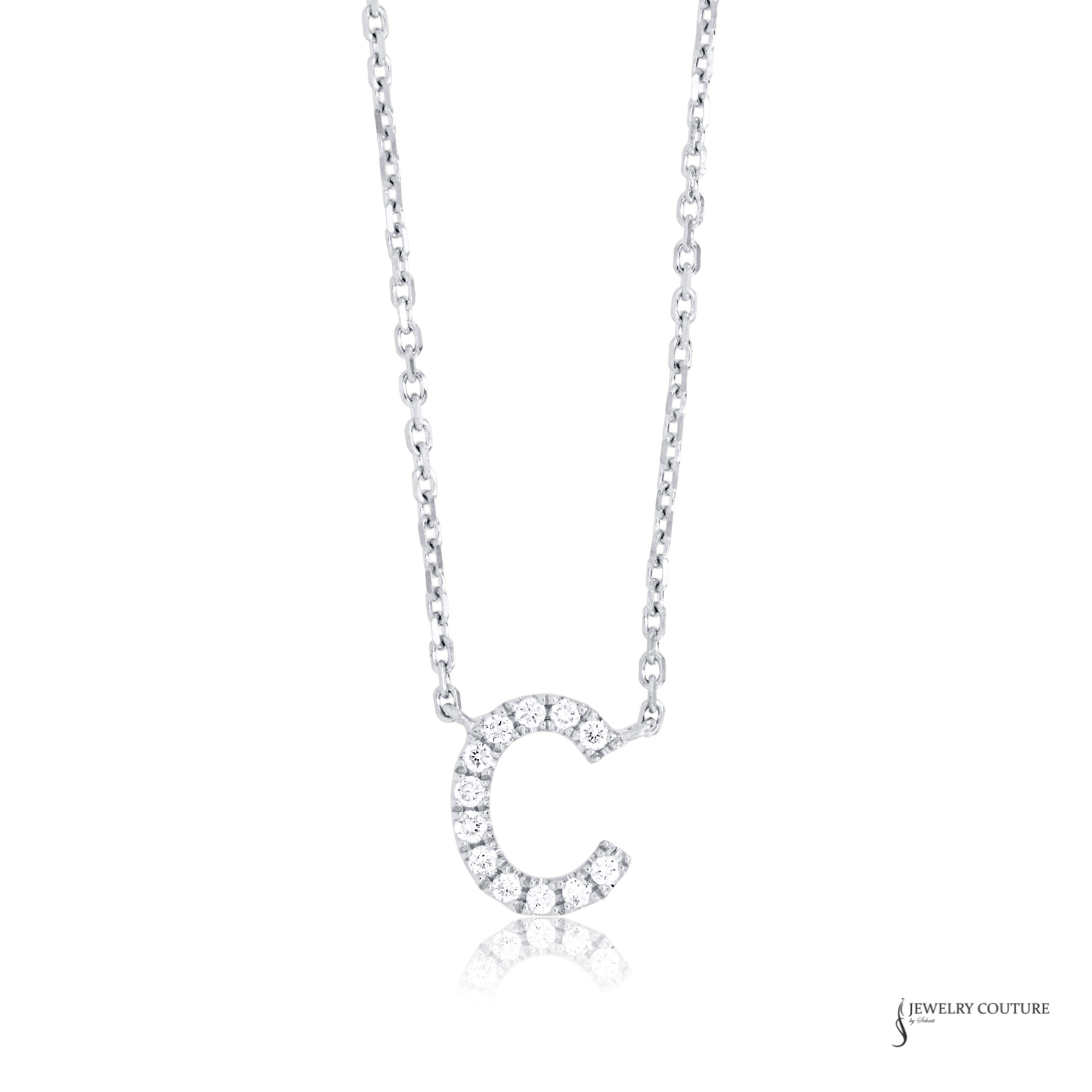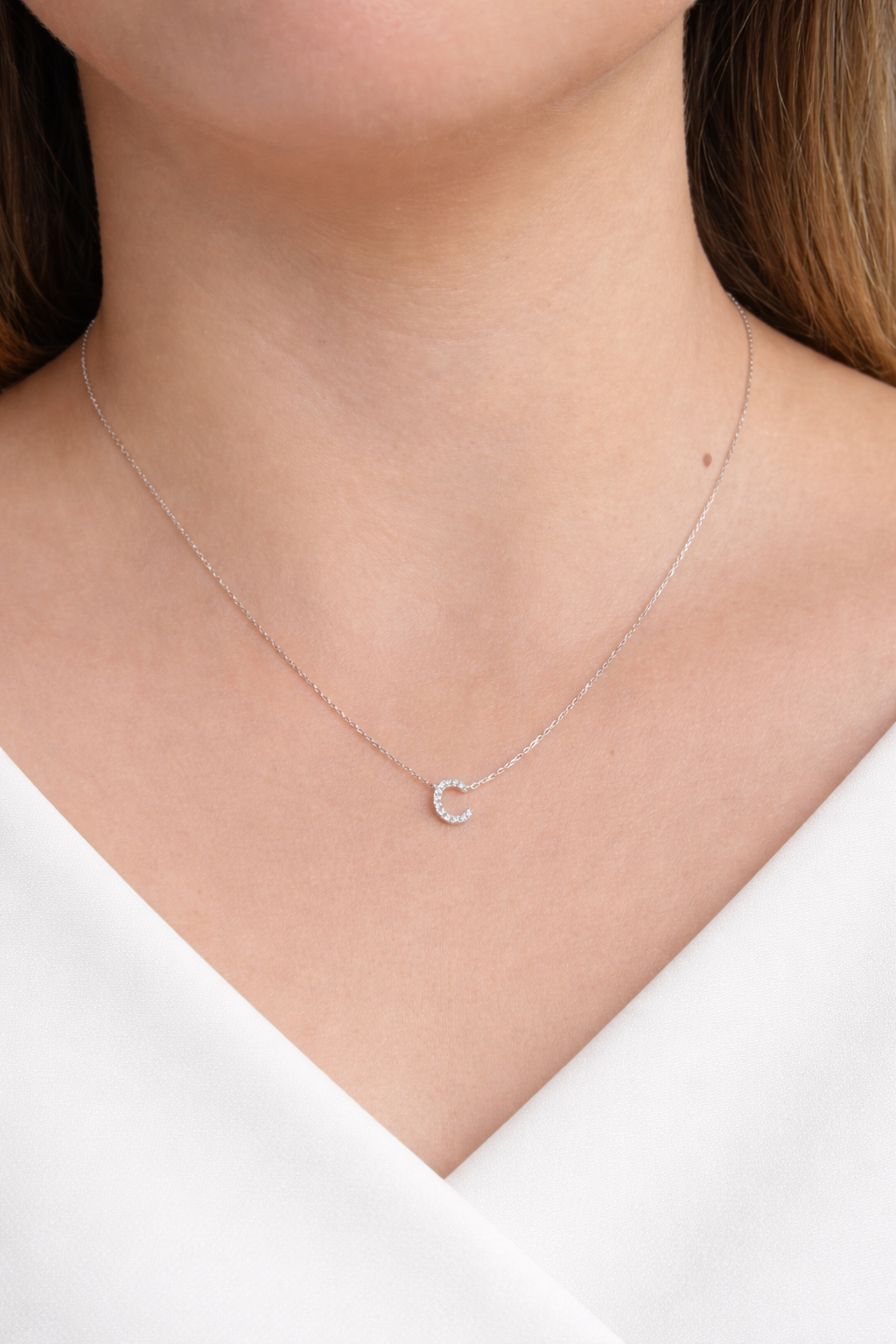 Designed with a clean, modern silhouette, the diamond-set “C” pendant offers a delicate yet eye-catching look, perfect for layering or wearing on its own. The pendant is suspended from a 17.4 inch white gold chain, resting beautifully at the neckline for effortless daily wear or special occasions.