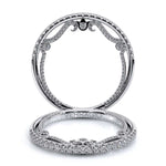 INSIGNIA-7060WSB wedding ring from the Insignia Collection featuring round brilliant-cut diamonds pave set on a straight shank. Complimented by Verragio's timeless signature crest beading.