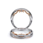 INSIGNIA-7070W diamond wedding ring from the Insignia Collection featuring round brilliant-cut diamonds pave set on a twisted band. Unique with bezel set diamonds with distinguishing Insignia Scrollwork accompanied by Verragio's timeless signature beadin