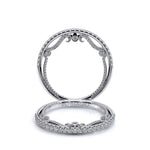 INSIGNIA-7070WSB wedding ring from the Insignia Collection featuring round brilliant-cut diamonds pave set on a straight band. Unique with bezel set diamonds with distinguishing Insignia Scrollwork accompanied by Verragio's signature crest and beading.
