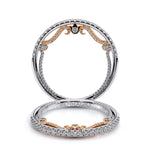 INSIGNIA-7074WSB wedding ring from the Insignia Collection featuring round brilliant-cut diamonds pave set on a straight band. Unique with bezel set diamonds with distinguishing Insignia Scrollwork accompanied by Verragio's signature crest and beading.
