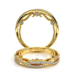 INSIGNIA-7084W-TT wedding ring from the Insignia Collection featuring round brilliant-cut diamonds pave set on a twisted band. Unique with bezel set diamonds and distinguishing Rose Gold Insignia Scrollwork accompanied by Verragio's signature beading.