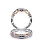 INSIGNIA-7091W diamond wedding ring from the Insignia Collection featuring round brilliant-cut diamonds pave set on a twisted band. Unique with bezel set diamonds with distinguishing Insignia Scrollwork accompanied by Verragio's signature crest and beadi