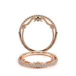 INSIGNIA-7091WSB diamond wedding ring from the Insignia Collection featuring round brilliant-cut diamonds pave set on a straight band. Unique with bezel set diamonds with distinguishing Insignia Scrollwork accompanied by Verragio's signature crest and be