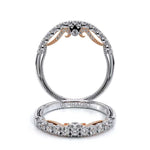 INSIGNIA-7097W diamond wedding ring from the Insignia Collection. Featuring a shared-prong set band with round brilliant-cut diamonds. Distinguished by handcrafted diamond Insignia scrollwork amid Verragio's signature beading and crest.