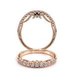 INSIGNIA-7097W diamond wedding ring from the Insignia Collection. Featuring a shared-prong set band with round brilliant-cut diamonds. Distinguished by handcrafted diamond Insignia scrollwork amid Verragio's signature beading and crest.