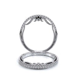 INSIGNIA-7099WSB diamond wedding ring featuring round brilliant-cut diamonds pave set on a straight band. Unique with bezel set diamonds with distinguishing Insignia Scrollwork accompanied by Verragio's signature crest.