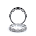 INSIGNIA-7101W diamond wedding ring from the Insignia Collection featuring round brilliant-cut diamond channel set on a straight band. Adorned with handcrafted diamond Insignia Scrollwork accompanied by Verragio's signature crest and beading.