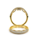 INSIGNIA-7104W diamond wedding ring from the Insignia Collection featuring round brilliant-cut diamonds pave set on a straight band. Adorned with handcrafted diamond Insignia scrollwork accompanied by Verragio's signature crest and beading.