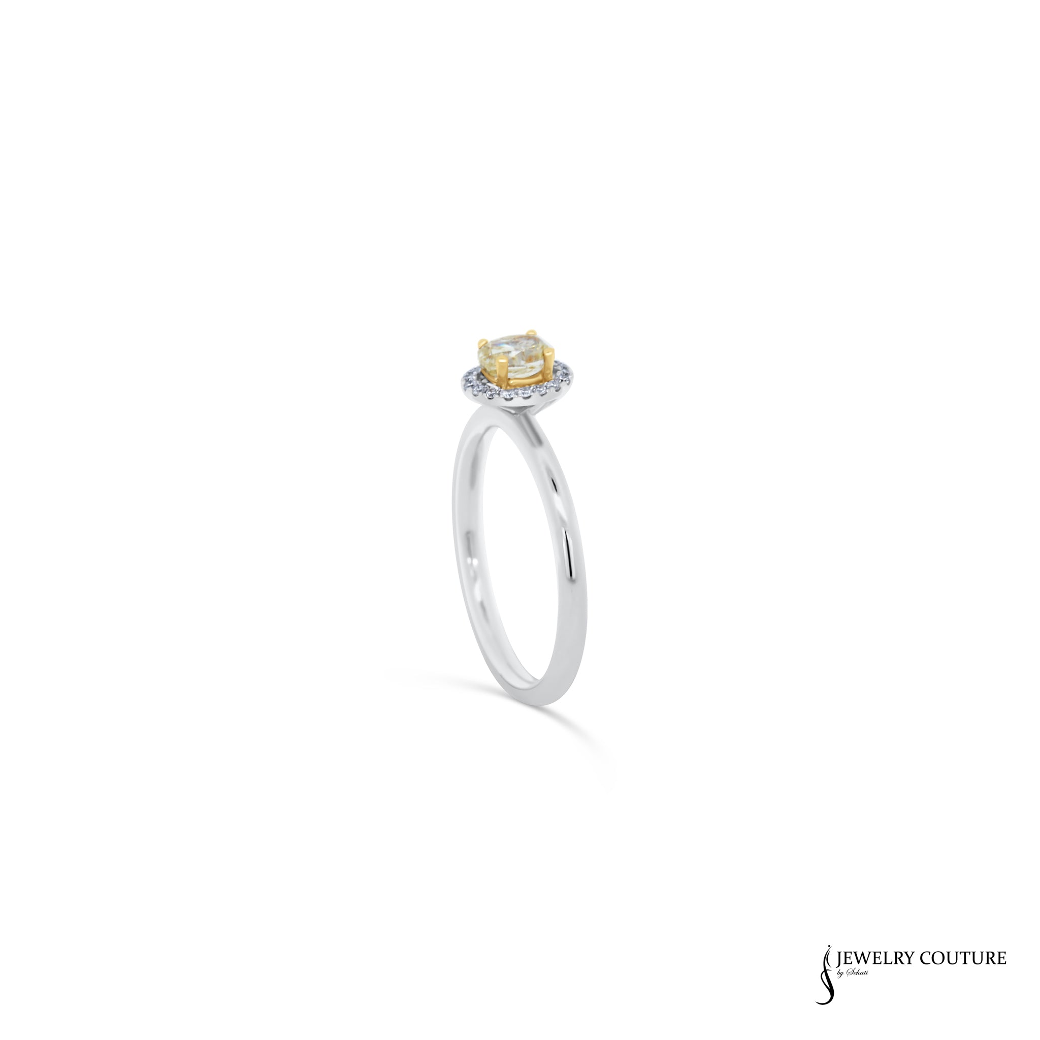Jessamine - 14KT White Gold Yellow Oval Diamond Stackable Halo Ring
