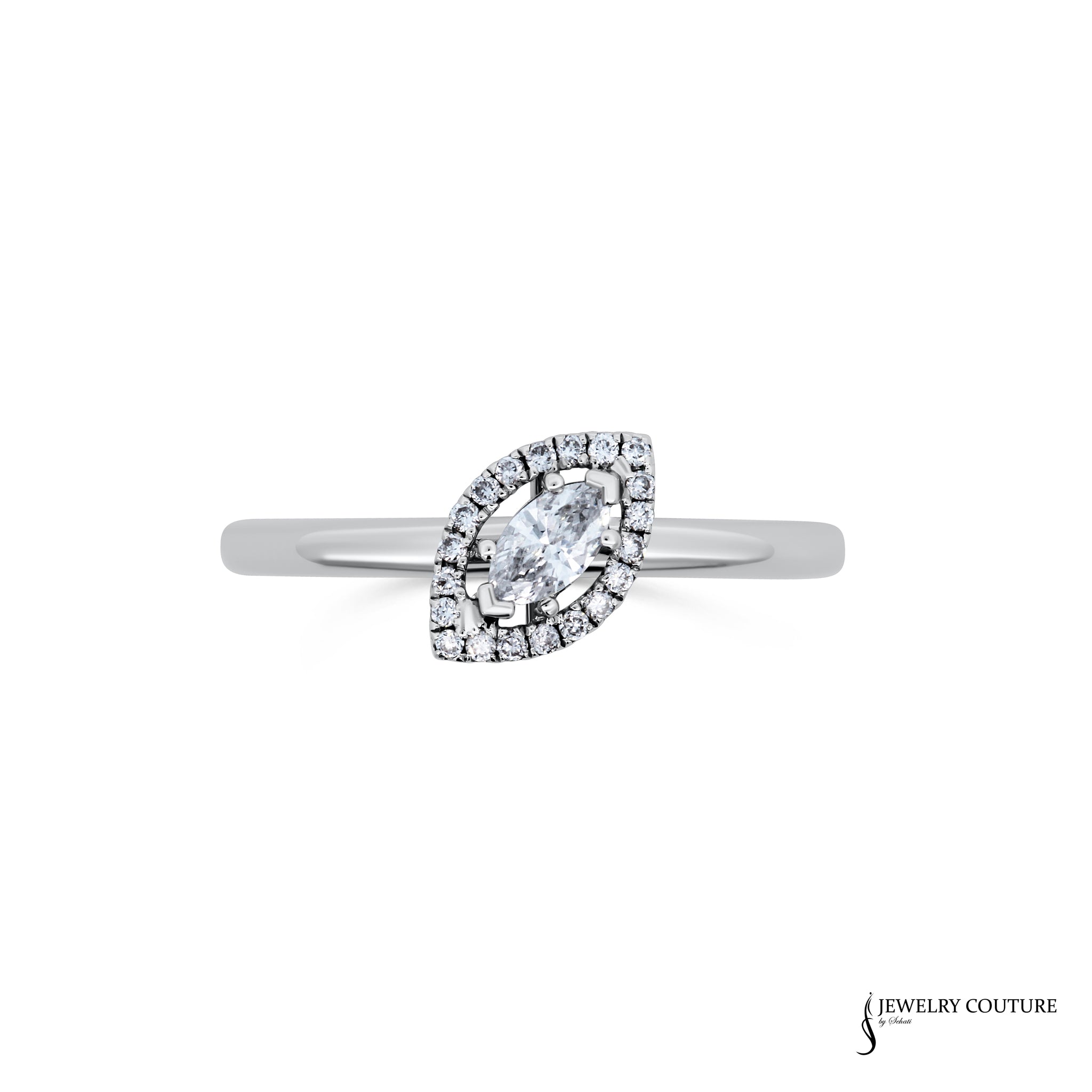 Lechenaultia - 14KT White Gold Stackable Marquise Diamond Halo Ring