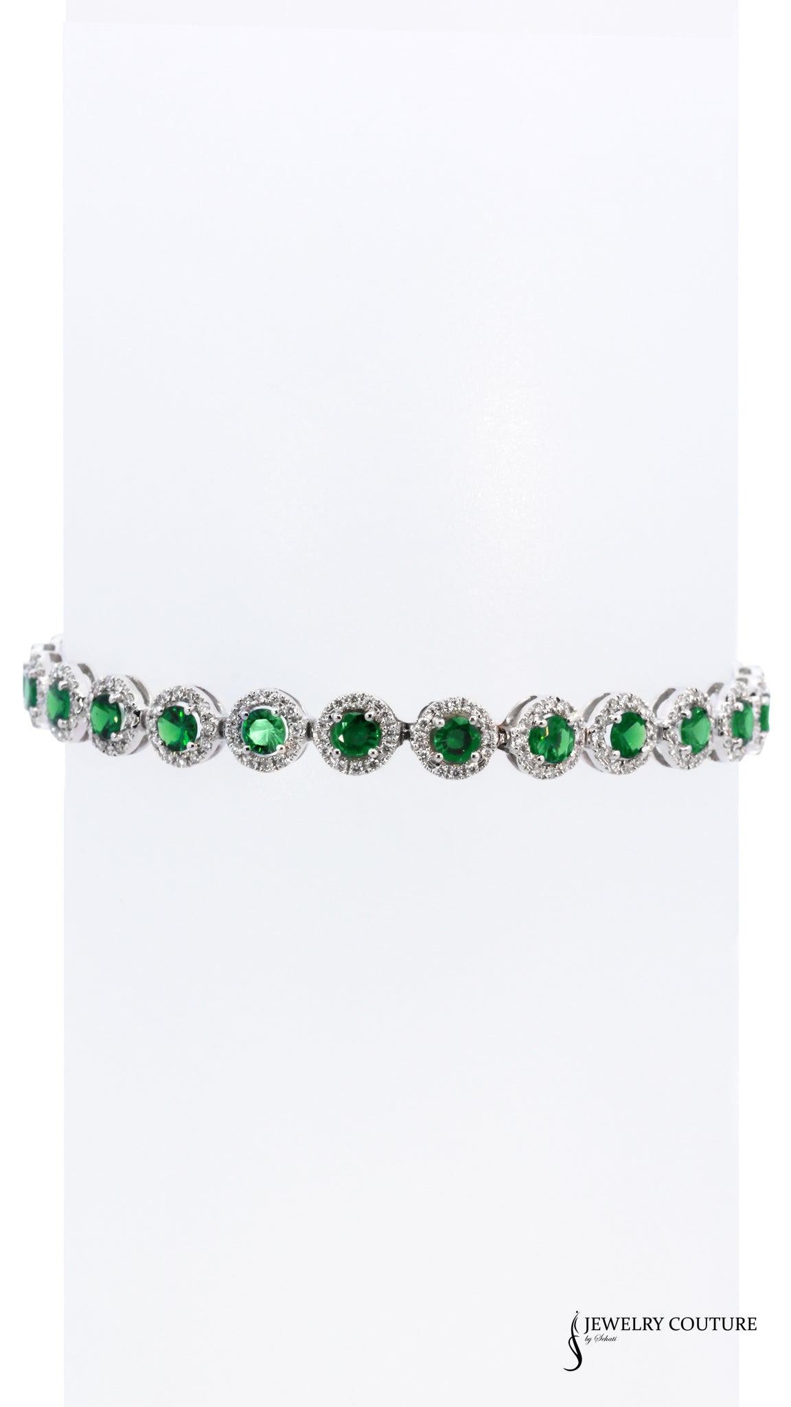 Made of 14KT white gold, this stunning piece features 5.36CT tsavorite stones, accented by a 1.28CT halo setting. Elevate any outfit with the eye-catching sparkle and luxurious elegance of this tennis bracelet.