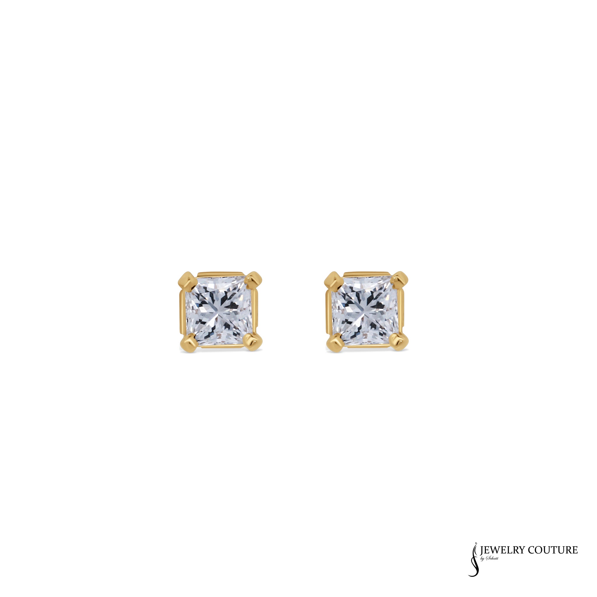 14KT Yellow Gold Lab-Grown Princess Cut Diamond Stud Earrings – 0.93CT TWD